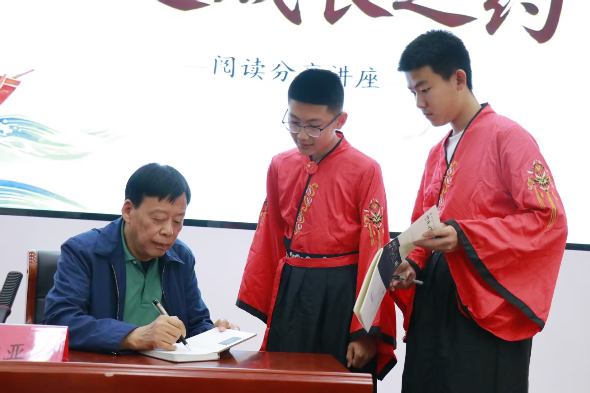 当天最受学生欢迎的环节,是浙江省作家协会名誉主席、鲁迅文学奖得主黄亚洲带来的讲座《以书为舟,赴成长之约》。黄亚洲结合自身文学积淀与创作实践,与师生深入交流,深刻阐述阅读对精神成长、人格塑造和视野拓展的重要意义,有效激发青少年阅读兴趣与文学热情。讲座结束后,学生们排起长队请教问题,一名学生说:“坚持阅读,就是把读书当成每天都要做的事。”