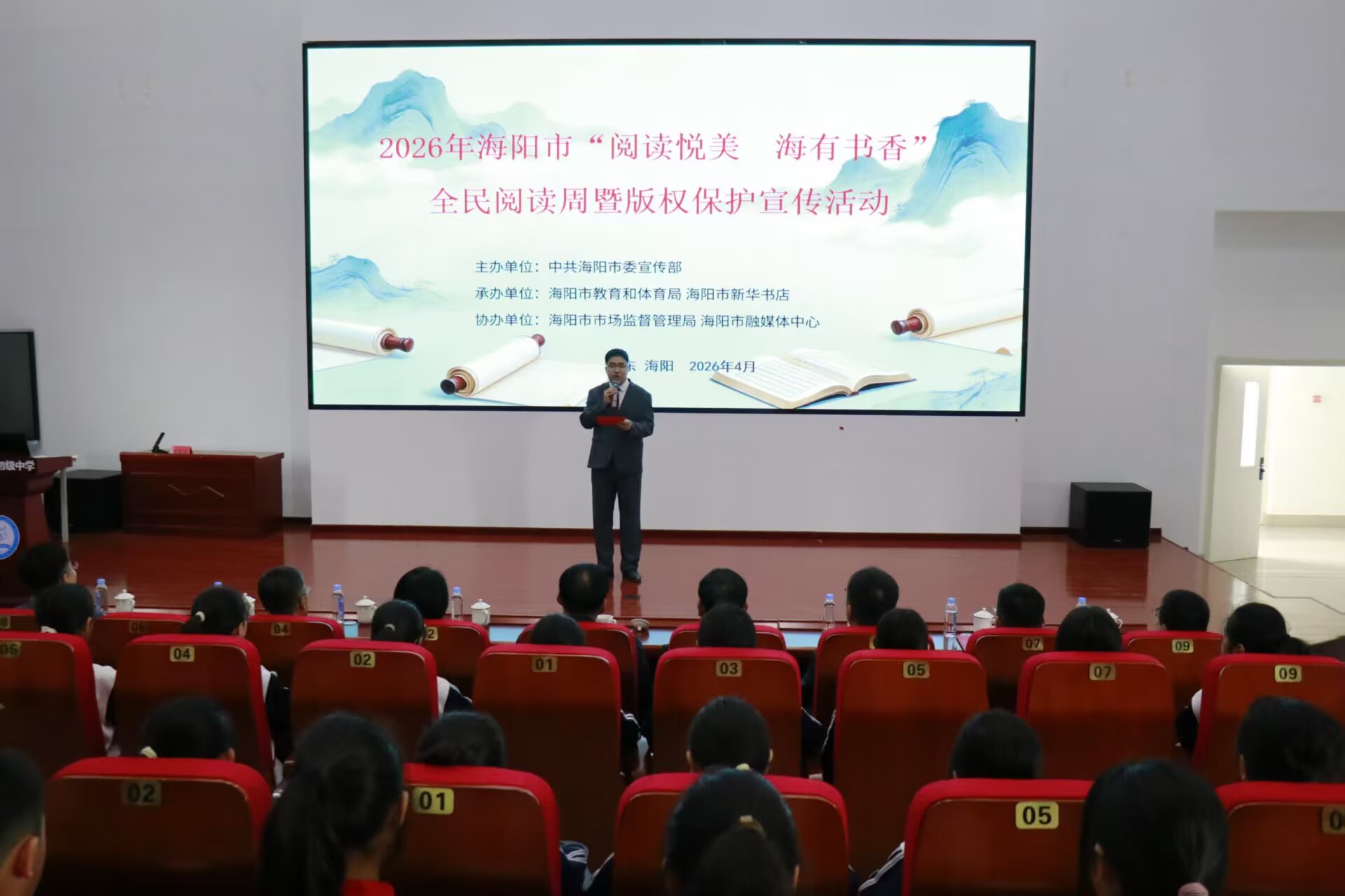 本次活动由海阳市委宣传部主办,海阳市教育和体育局、海阳市新华书店承办,海阳市市场监督管理局、海阳市融媒体中心协办。