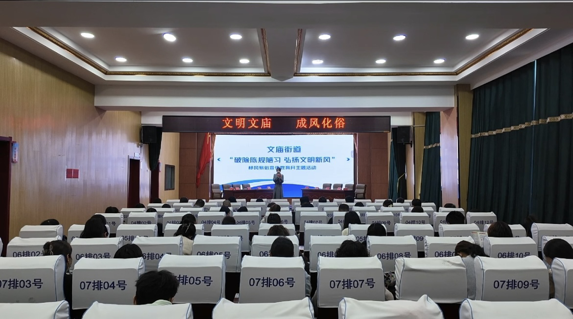 为深入推进移风易俗工作,破除高价彩礼、奢侈陪嫁、大操大办等陈规陋习,营造简约适度、文明和谐的社会氛围,4月21日,文庙街道组织开展“破除陈规陋习 弘扬文明新风”移风易俗主题宣传教育月活动,同步推出“文明文庙成风化俗”移风易俗主题宣传品牌,街道各村居宣传委员、社区工作者共60余人参加活动。