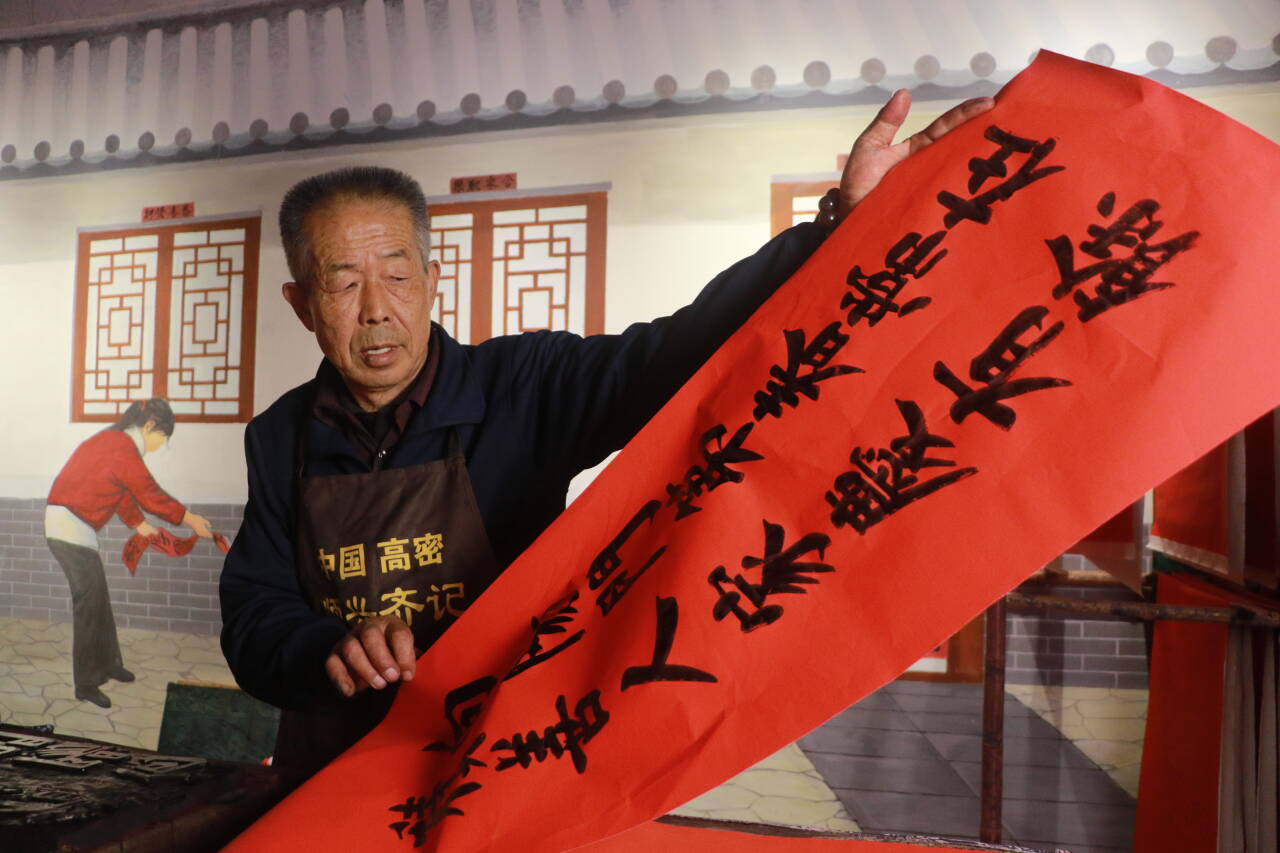 理论入脑,现场互动更入心。专题宣讲结束后,与会人员走进春联博物馆,墨香扑鼻而来。百姓宣讲员王俊海现场展示刷红纸技艺,毛刷起落间,一张张鲜红的春联纸整齐铺开,挥毫泼墨间,一副副寓意美好的春联跃然纸上。“女铁匠”綦梦琦站在展台前,深情讲述自己坚守匠心、传承高密菜刀技艺的故事,朴实的话语里满是执着,打动了在场的每一位观众。