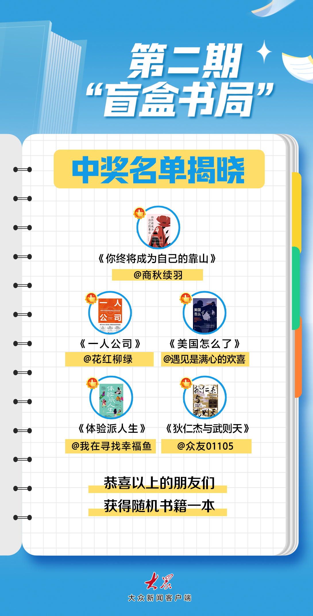 盲盒书局|第二期中奖名单揭晓!今日好书免费领,快来评论区以文会友