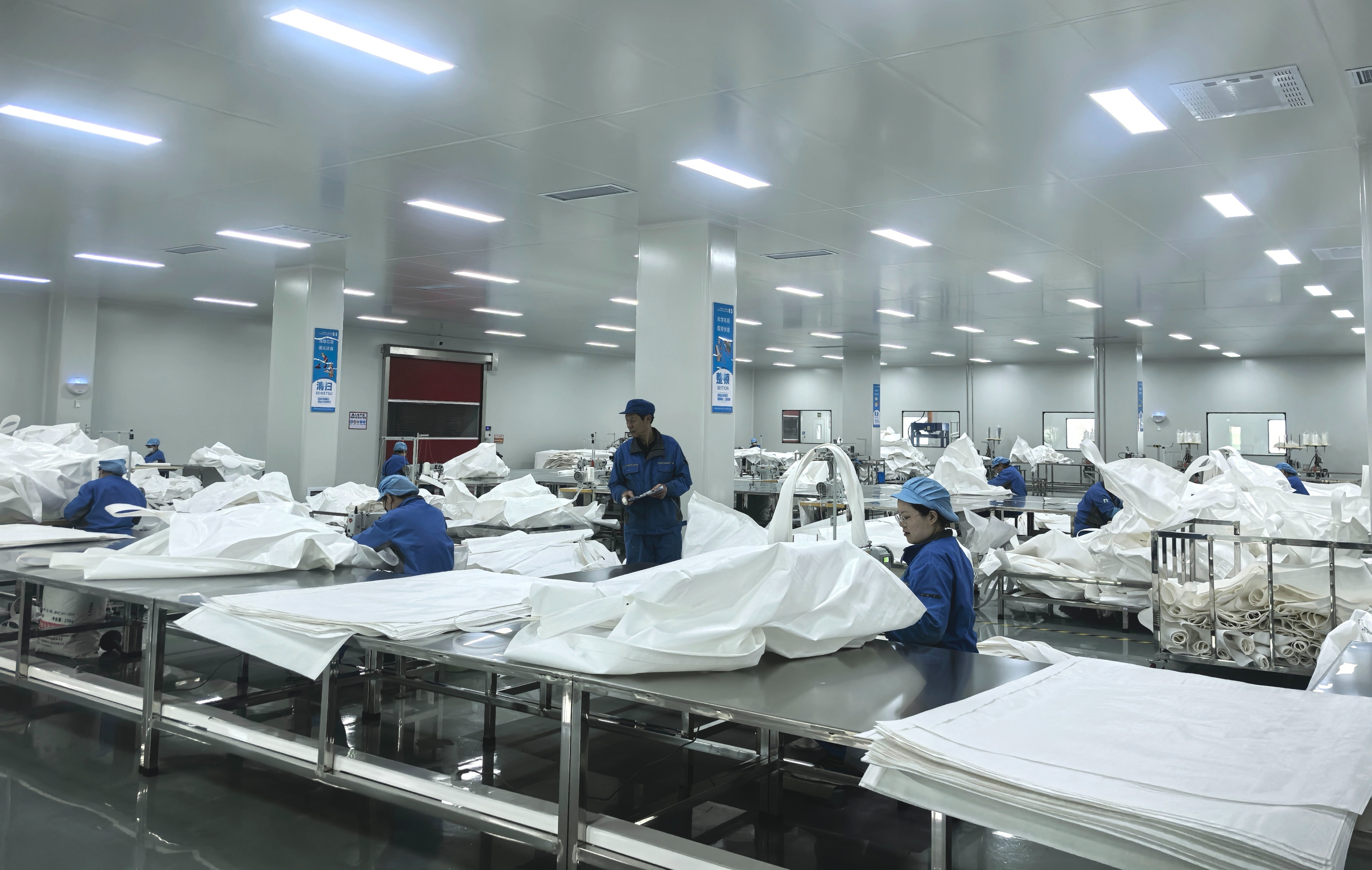 在台儿庄经济开发区中基创科食药包装(山东)有限公司的车间,工人们正在加工食品药品级吨包袋。这家由青岛正大环保科技有限公司投资的企业,运营仅3个多月就开始独立接单,进入雀巢、益海嘉里等头部企业供应链。