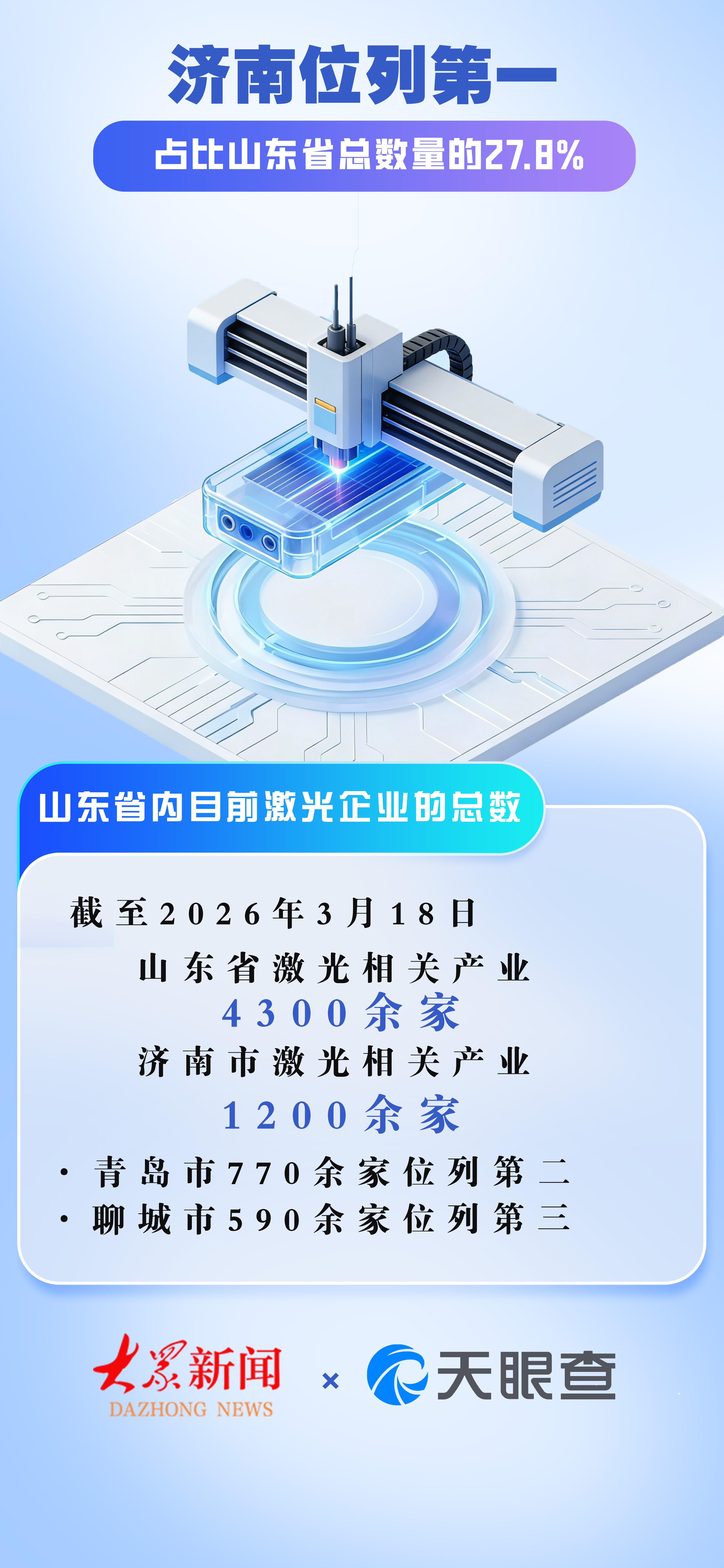 海报|济南市激光相关产业位列省内第一 占比山东省总数量的27.8%