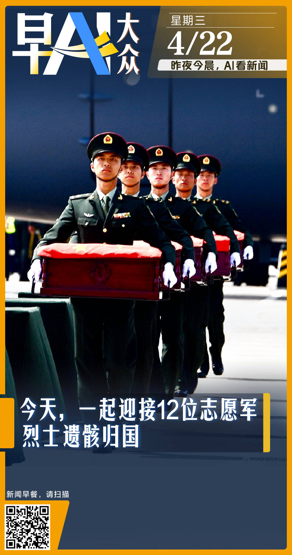 早AI大众|第十三批在韩志愿军烈士遗骸今日归国;特朗普延长与伊朗停火期限