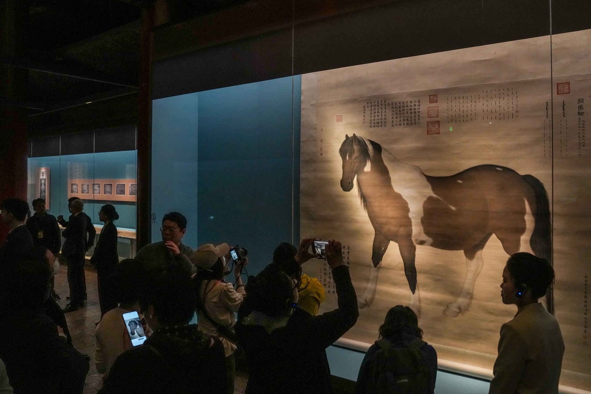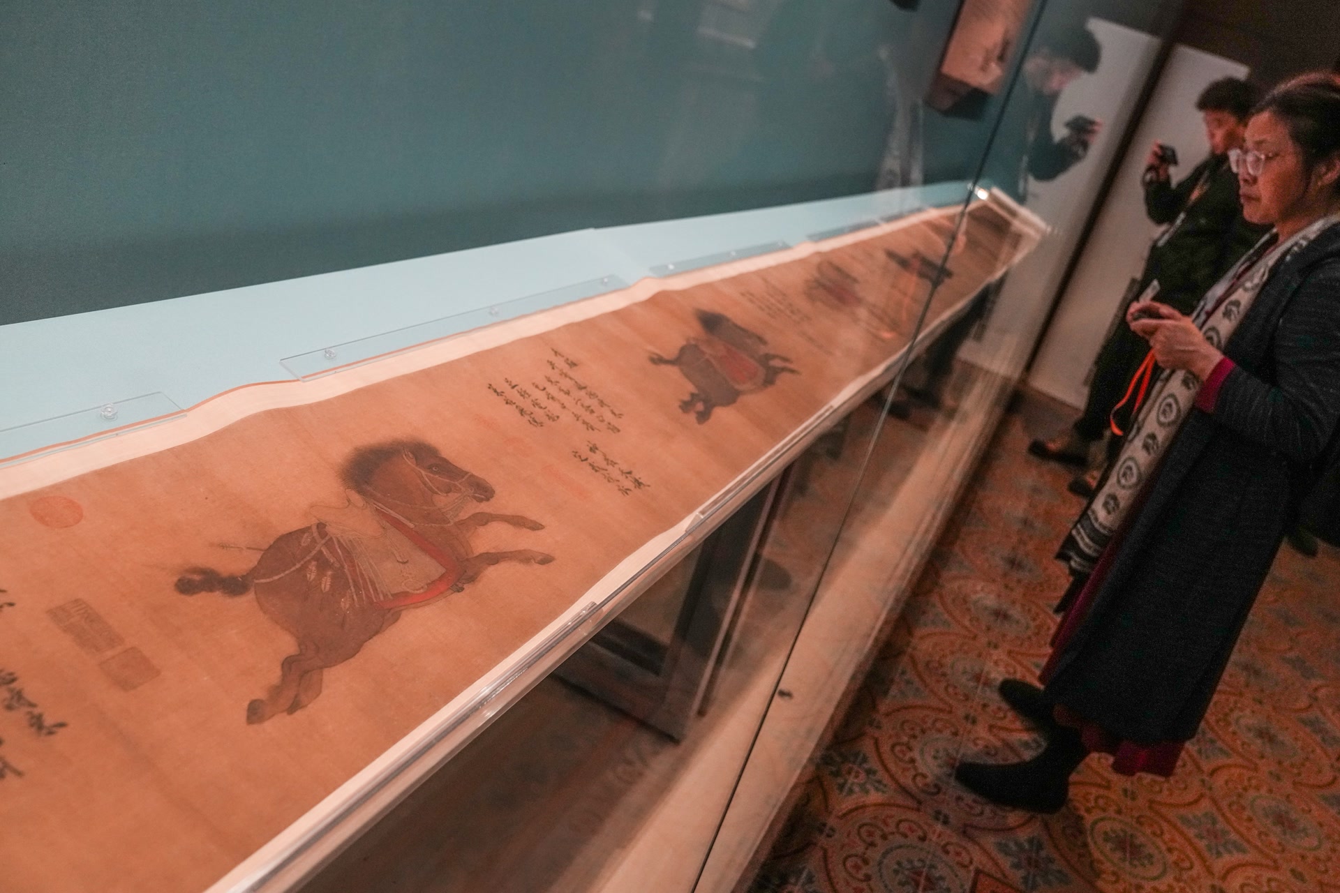 “神骏:故宫书画艺术中的马世界”展览展出的金代赵霖《昭陵六骏图》卷吸引参观者驻足。