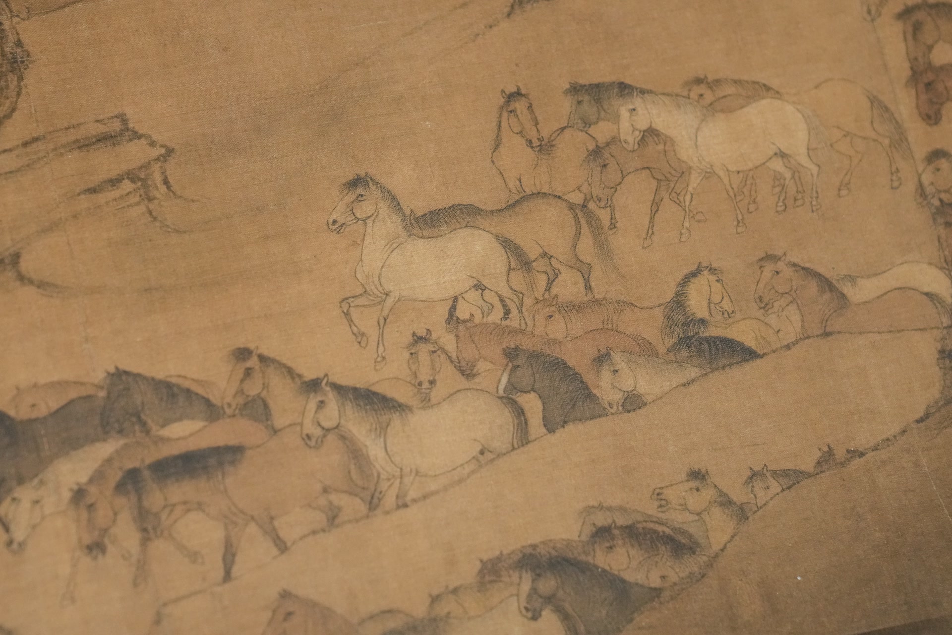 “神骏:故宫书画艺术中的马世界”展览展出的唐人(传)《百马图》局部。