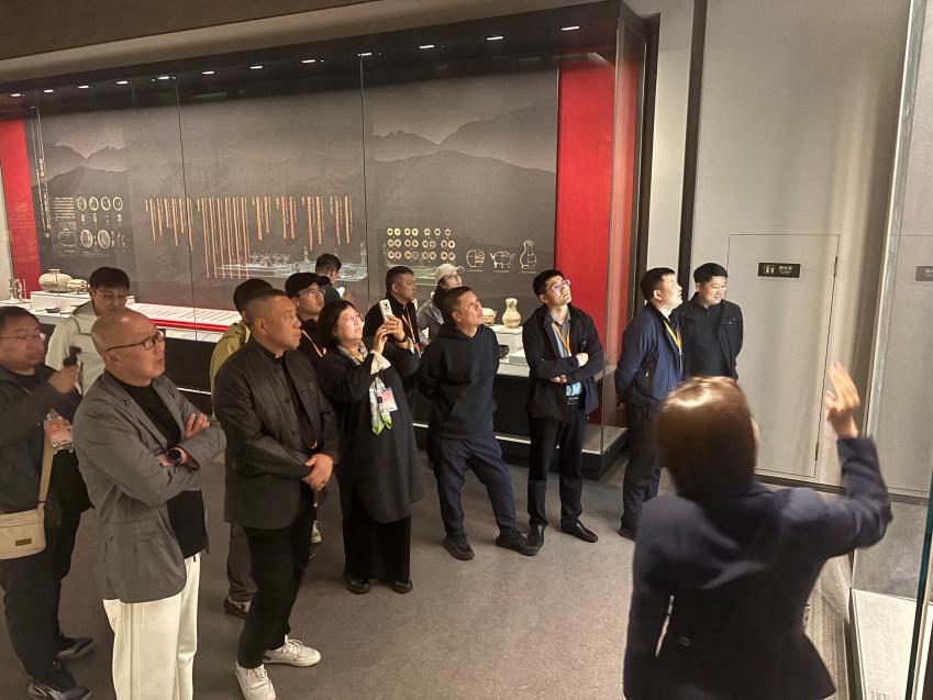 历史与现代的对话,在下午的行程中愈发深沉。银雀山汉墓竹简博物馆内,残破竹简上的古篆,用一笔一划回响着千年兵戈相碰的智慧。网络达人们俯身端详,试图从斑驳的字迹中辨认孙膑与庞涓的谋略。跨越历史和人群,涑河南岸的电影博物馆,则是将众人拉到百花齐放的银幕年代,《红嫂》《沂蒙六姐妹》《沂蒙小调》……锈迹斑斑的胶片让荧幕里的红色文化愈发深刻。