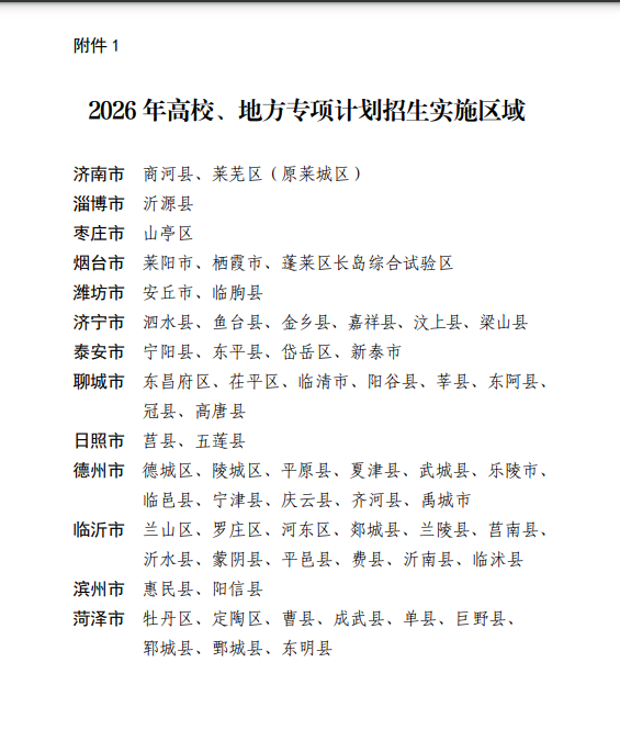 1.2026年高校、地方专项计划招生实施区域