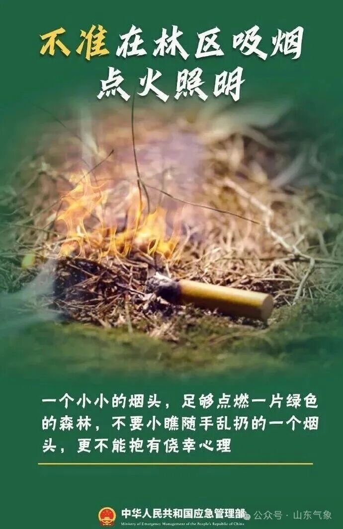 天干物燥,森林火险等级偏高,进入山林时,应留心各种防火细节。森林资源是我们大家共同的财富,严格遵守森林防火要求,共同守护绿水青山。