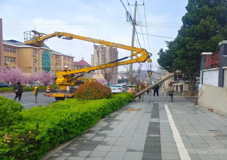 近日,栖霞市山城路上一组忙碌的身影吸引着来往群众的视线:工作人员有条不紊地对废弃电线杆进行拆除、对杂乱线缆进行梳理。据悉,今年以来,栖霞市共清理各类飞线两万余米,拆除废弃电线杆30余根。