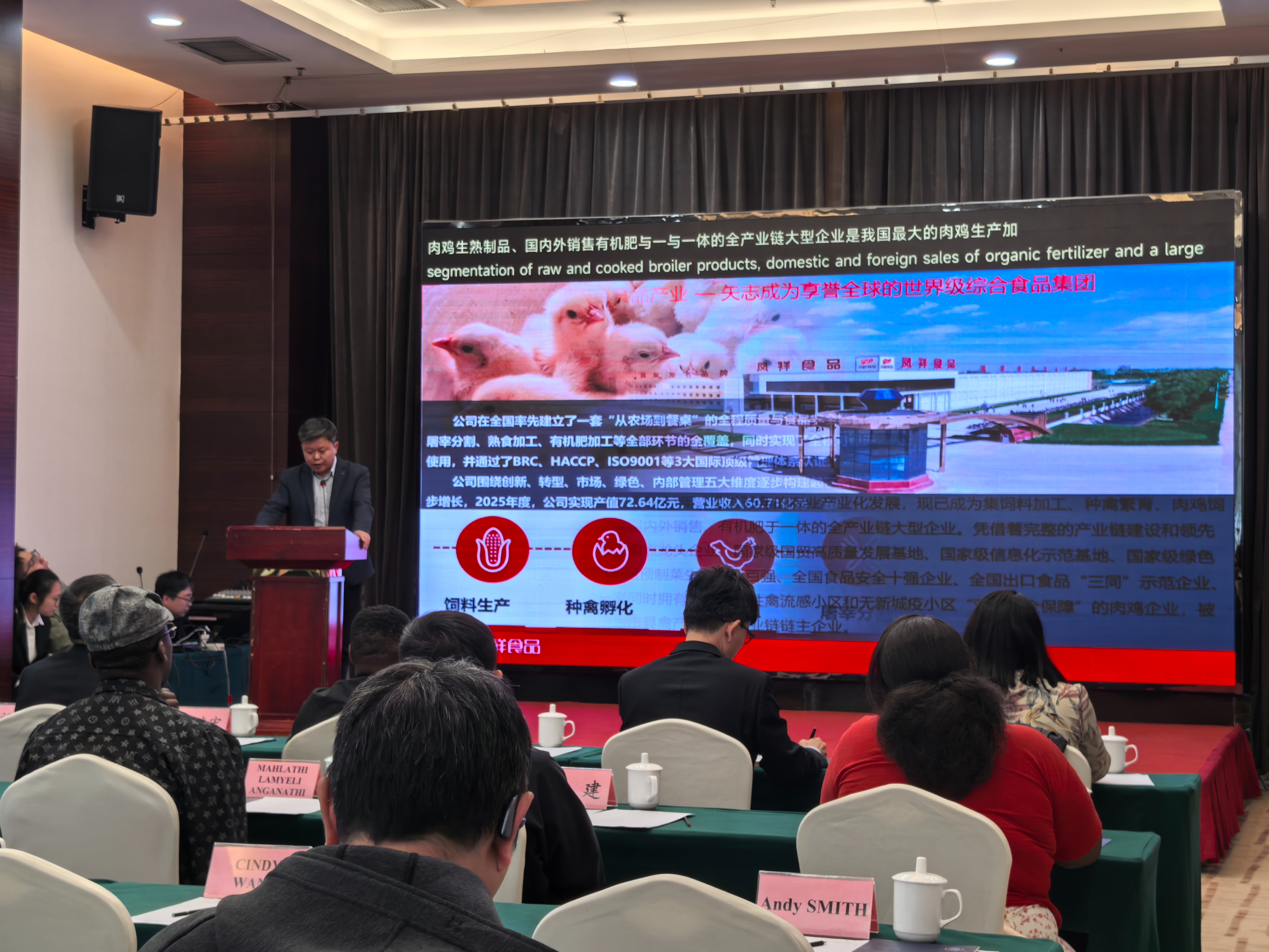 推介环节,市商务局党组成员、副局长戴斌宏表示,聊城始终以开放的姿态拥抱世界,持续优化营商环境、畅通国际物流通道,全方位扩大对外经贸交流合作。凤祥股份、耐克森电缆等聊城重点企业代表依次登台,向海外客商推介核心产品与合作优势。来自韩国、南非的外商代表相继发言,介绍本国市场需求与经贸合作意向,表达了与聊城企业深化贸易往来、拓展合作领域的强烈意愿。市商务局对外贸易科科长郭凌飞作聊城经贸专题推介,聚焦聊城农业、建筑材料、汽车及零部件等特色优势产业,系统介绍全市外贸产业基础和对外开放优势,进一步增强了外商在聊贸易合作、投资发展的信心。