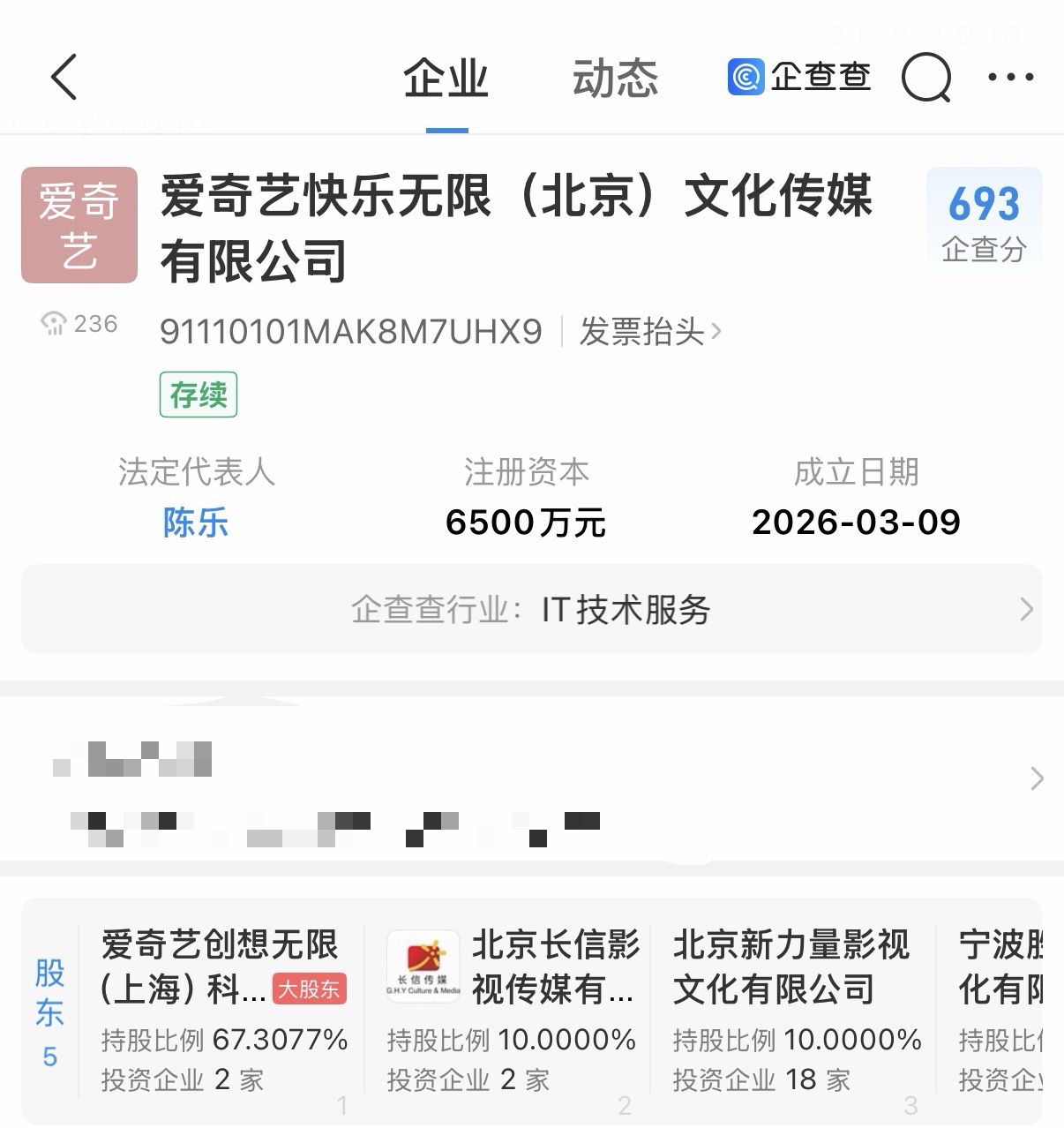 (齐鲁晚报·齐鲁壹点客户端编辑 张宝帆综合企查查、爱奇艺APP、网友评论公开信息等)