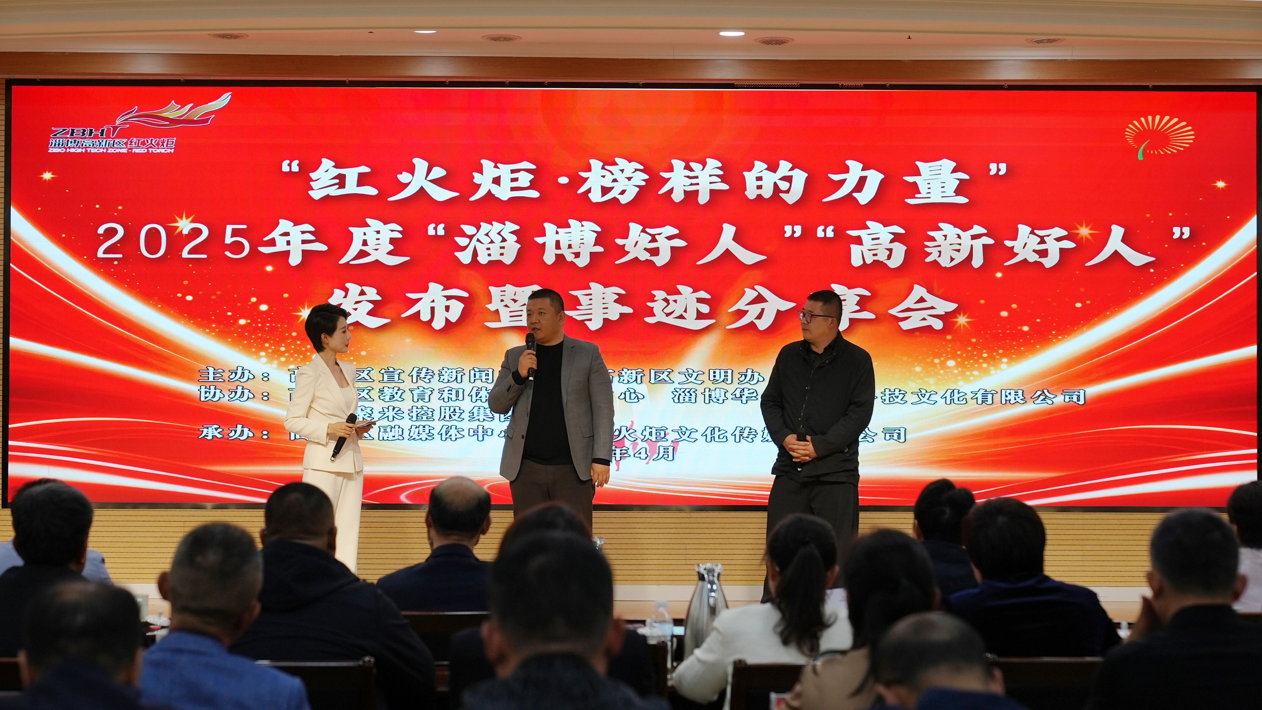 4月21日下午,“红火炬·榜样的力量”2025年度“高新好人”发布暨事迹分享会举行。活动公布新入选的4名“淄博好人”和19名“高新好人”名单,并分享他们的感人事迹。淄博市委宣传部四级调研员侯军元,淄博高新区工委委员、工委管委会办公室主任王飞出席活动。
