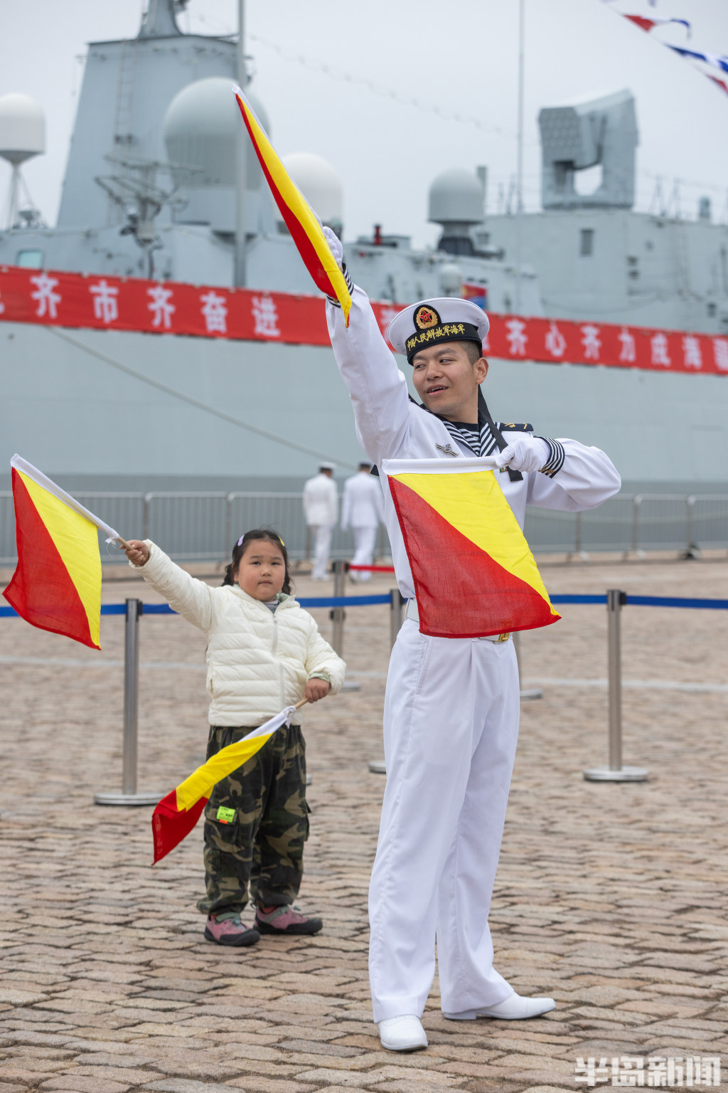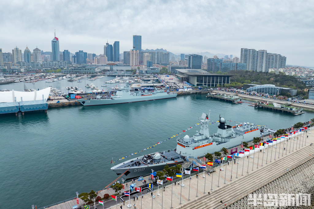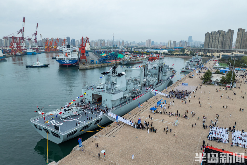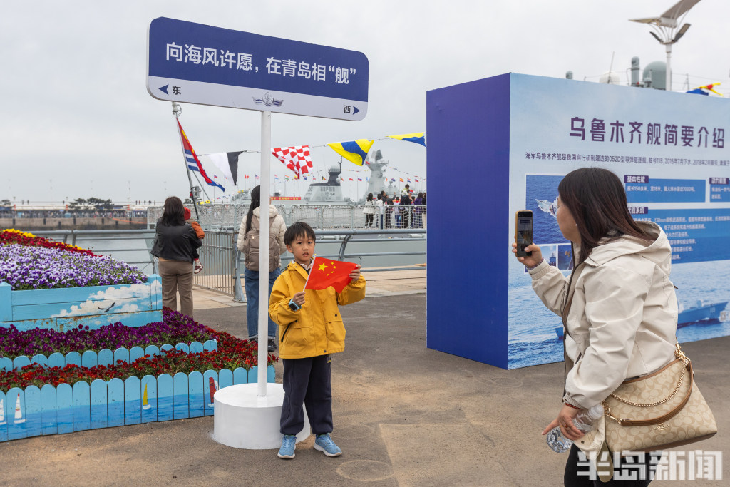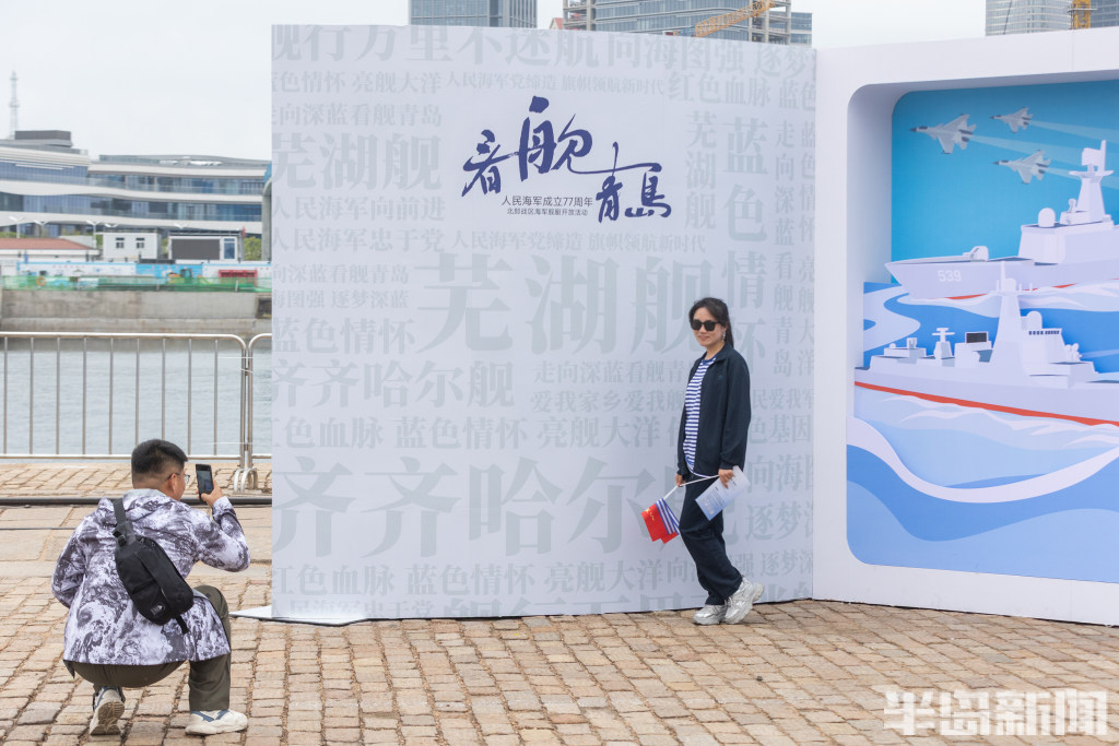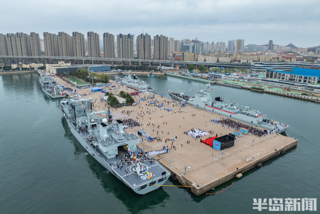 4月22日,青岛奥帆中心码头与青岛港三号码头,人民海军成立77周年北部战区海军舰艇开放活动举行,吸引大批群众前来一睹战舰风采。