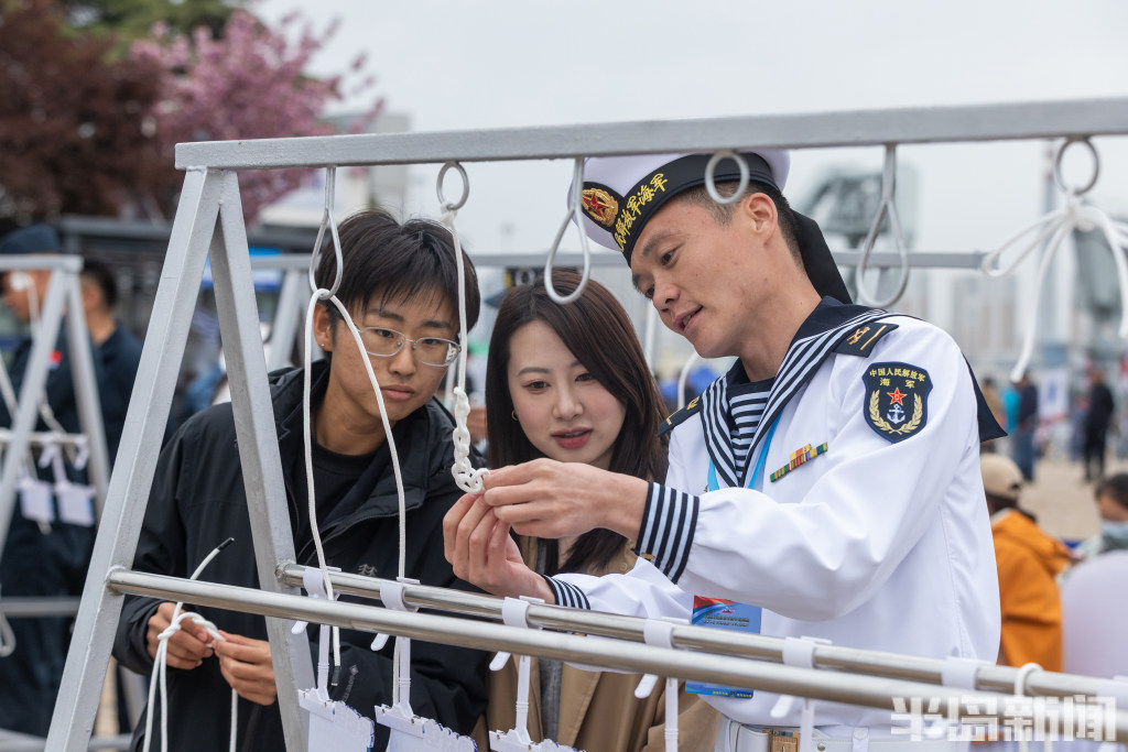 海军官兵教市民学习船艺绳结。