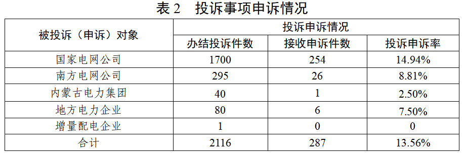 2026年3月,国家能源局派出机构受理职责范围内申诉事项137件,办结申诉295件(含往期结转),申诉事项主要集中在用电报装、电表计量、线路安全等方面。