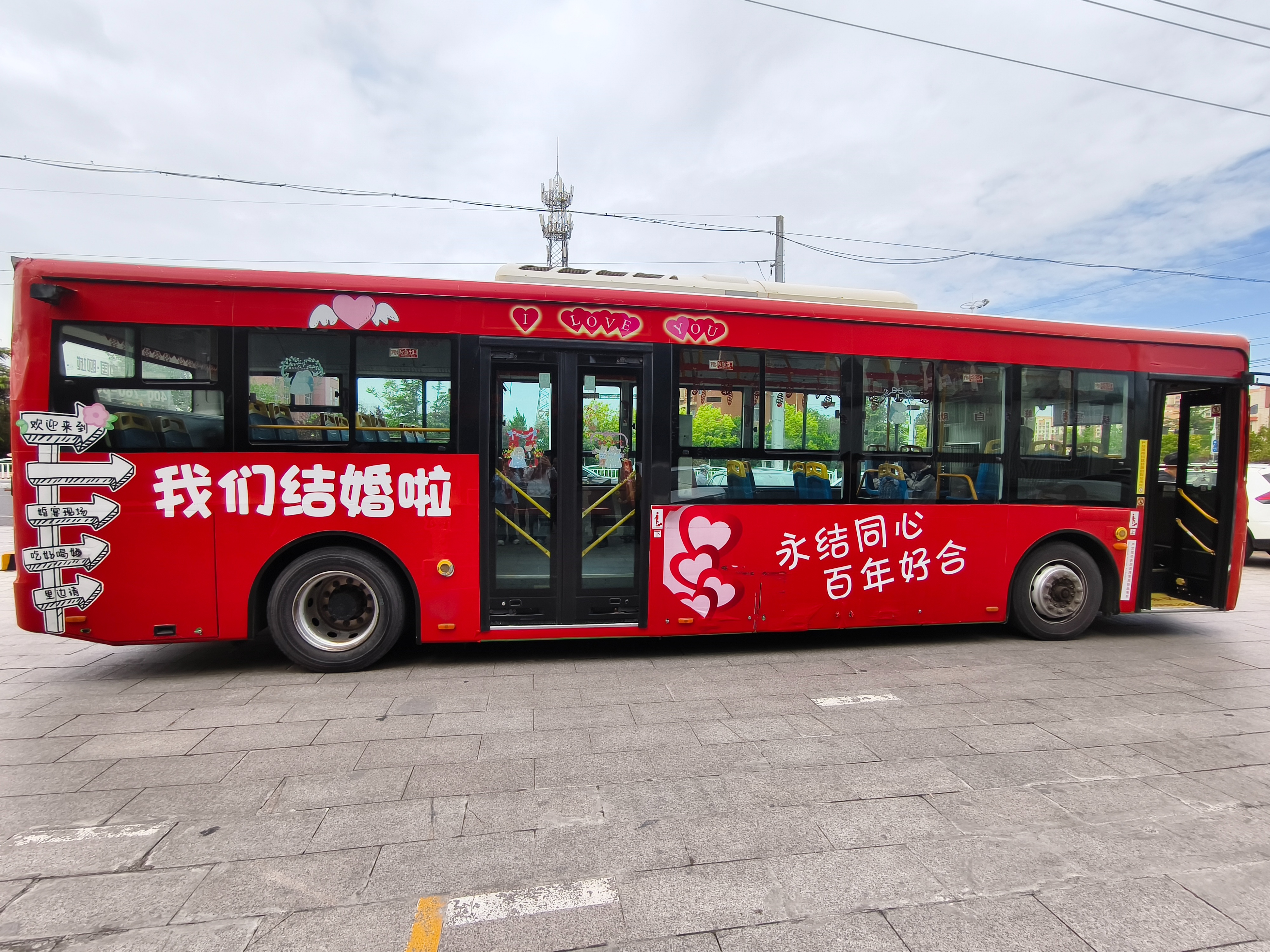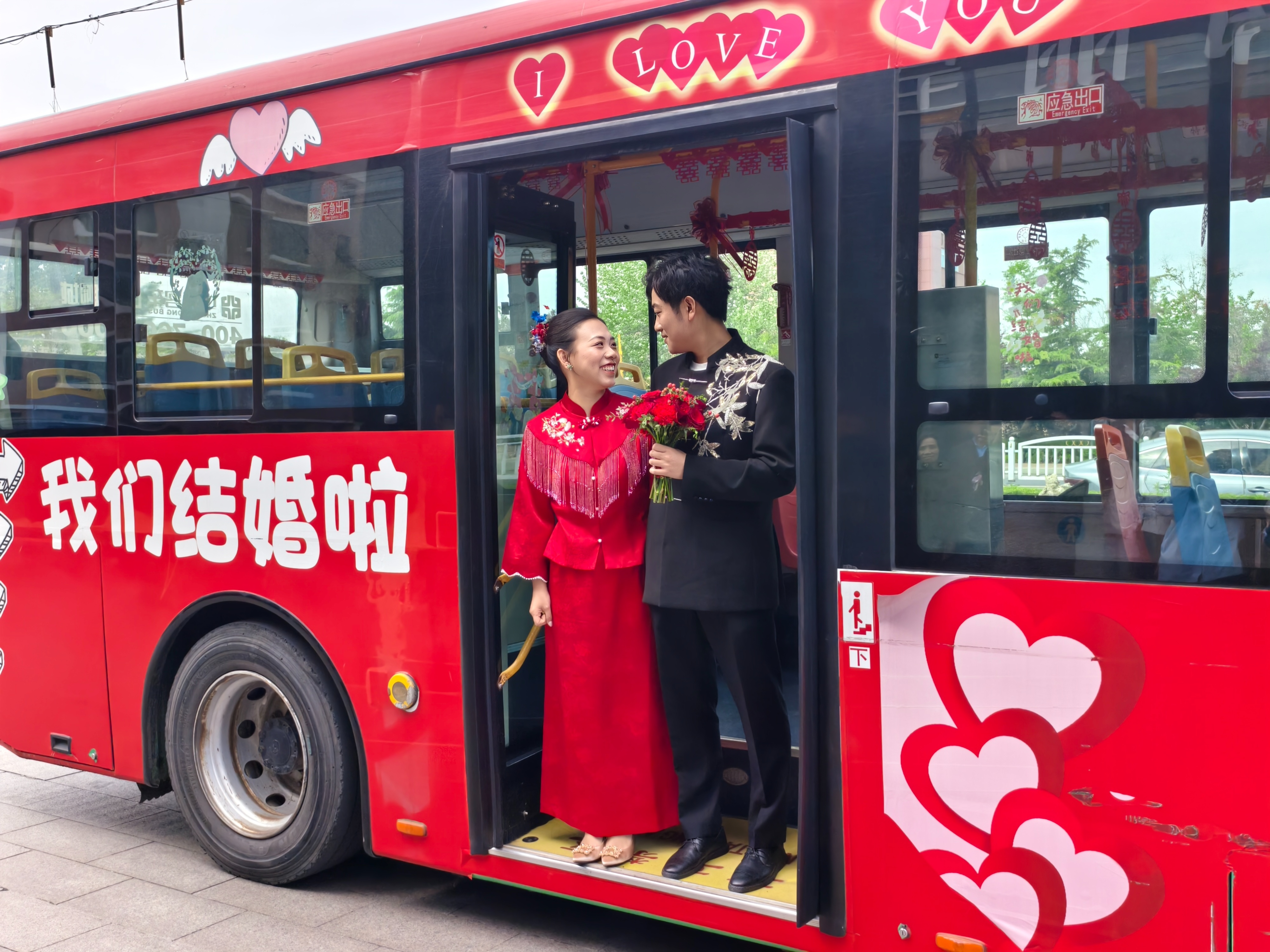 公交婚车“驶”向幸福!胶州90后新人用低碳浪漫开启甜蜜旅程