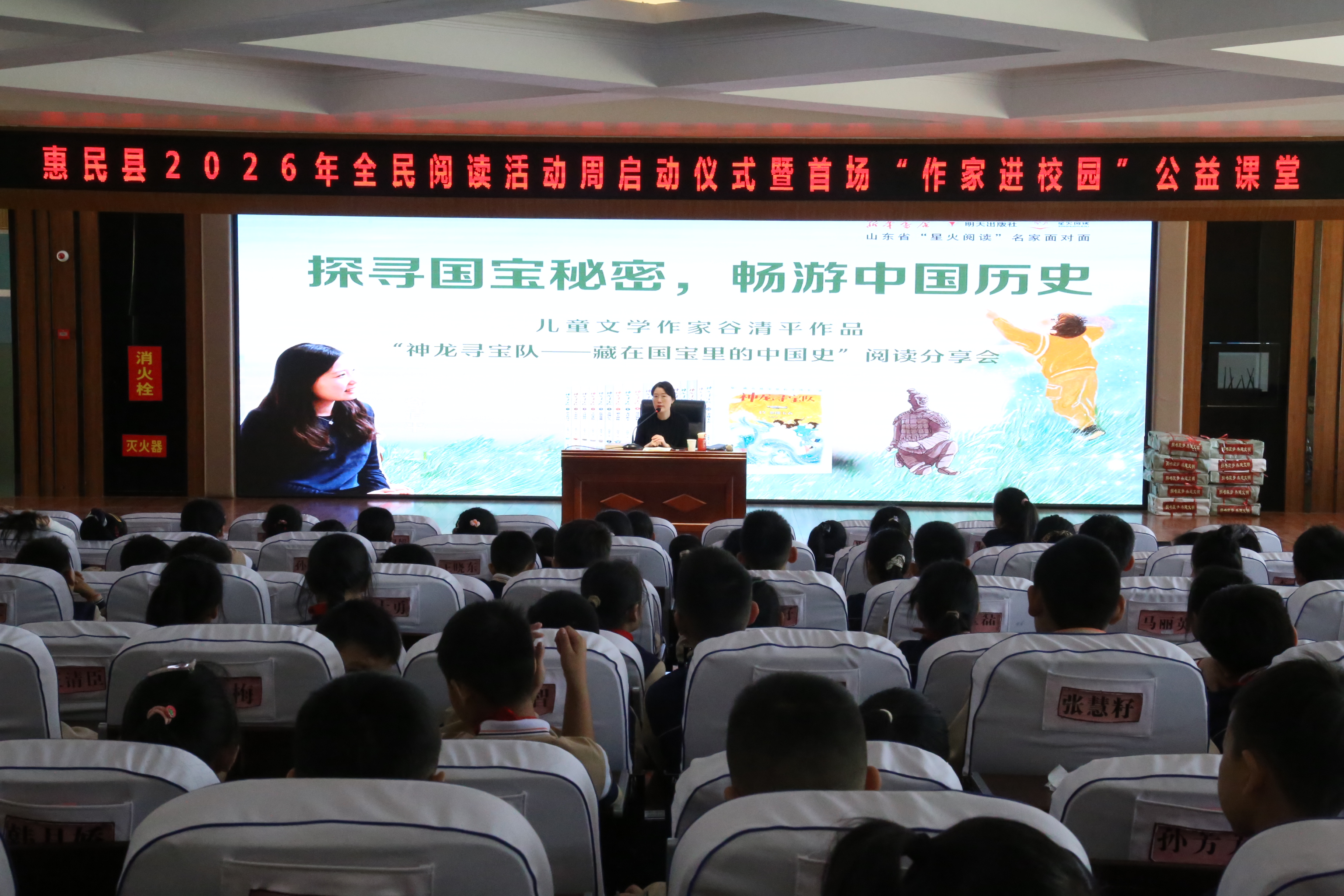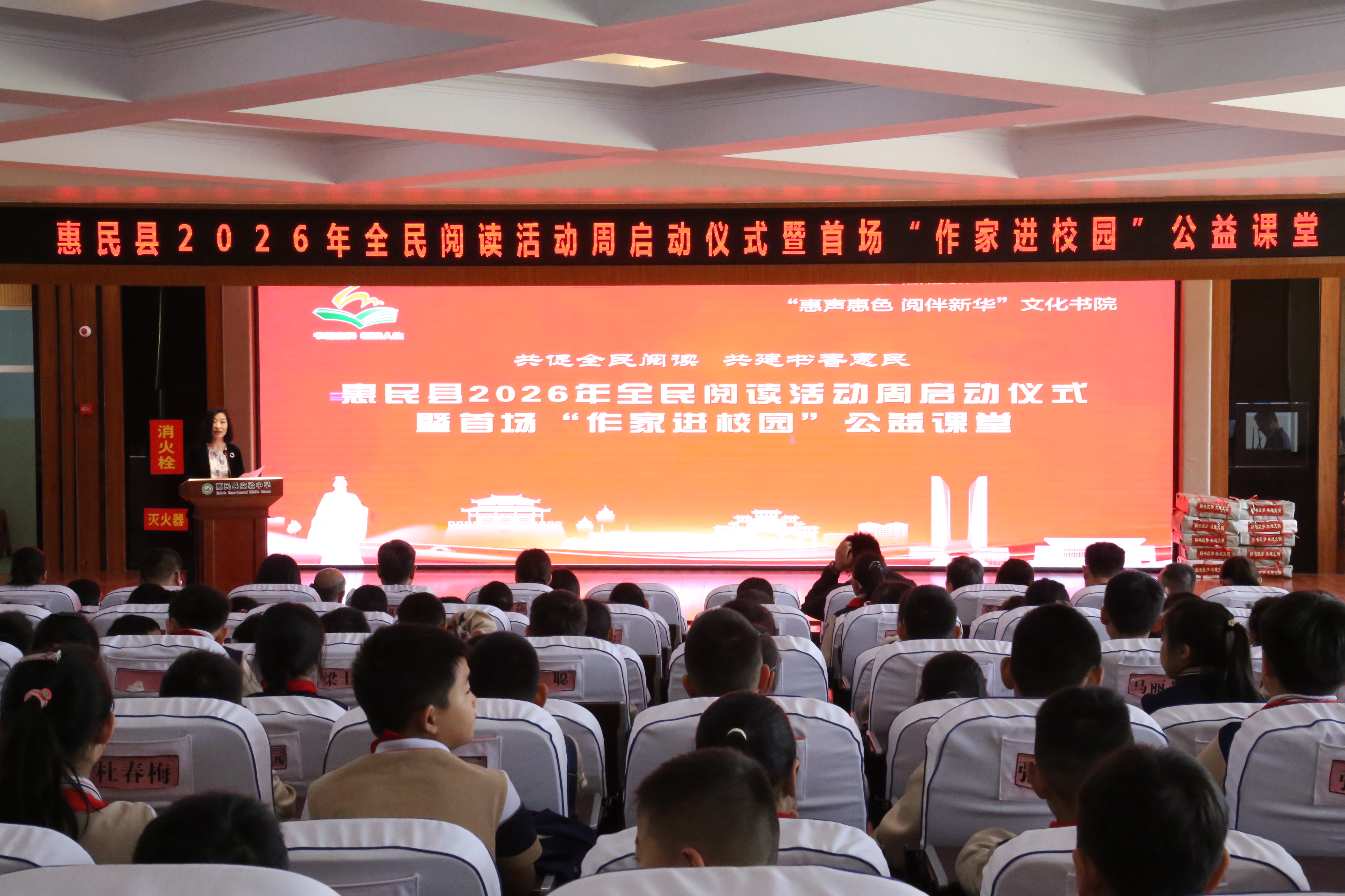芳菲四月,书香满城。4月20日,山东省滨州市惠民县 2026年全民阅读活动周启动仪式暨首场 “作家进校园” 公益课堂在惠民县实验中学圆满举行。本次活动由县委宣传部统筹,县教体局、文旅局、融媒体中心、新华书店等单位联合开展,旨在深入推进全民阅读工作,持续擦亮 “书香惠民” 文化品牌,涵养全民阅读风尚,营造爱读书、读好书、善读书的社会氛围。