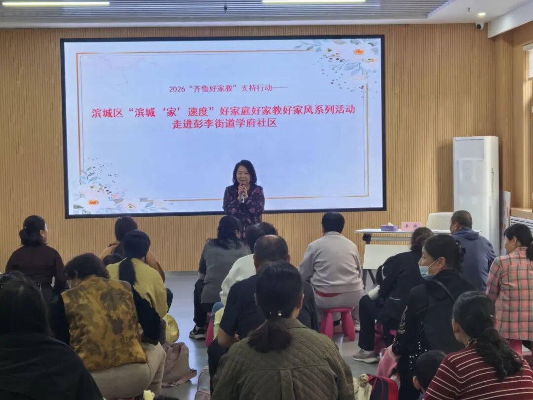 为进一步健全基层家庭教育指导服务体系,精准对接家长育儿需求与儿童成长需要,4月17日,滨城区彭李街道妇联举办2026“齐鲁好家教”支持行动——滨城区“滨城‘家’速度”好家庭好家教好家风系列宣讲进学府社区活动,小区20多个家庭参加了活动。