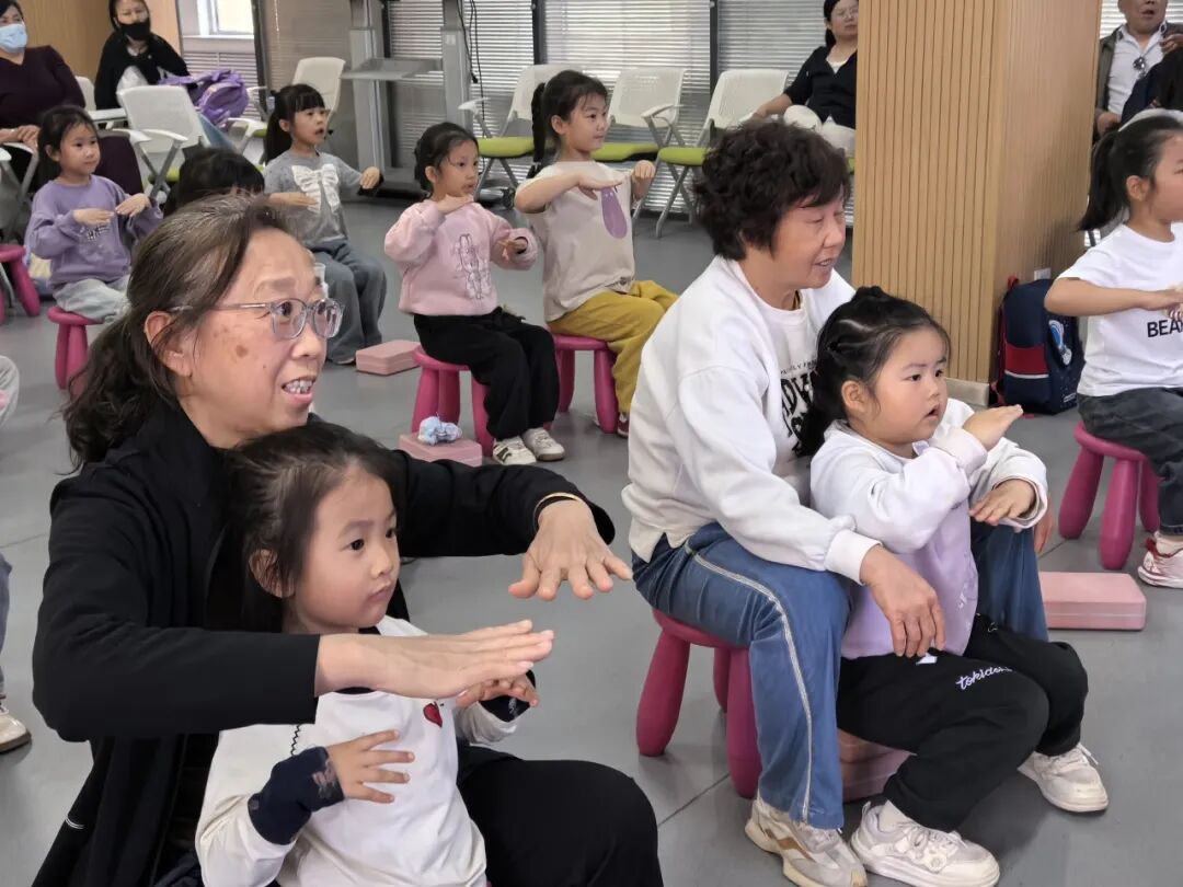 街道妇联特别邀请国家二级心理咨询师李燕和朵儿舞蹈老师邢敏为大家授课。首先李老师以《睡前10分钟,养出爱阅读的孩子》为题,跟家长们分享了让孩子爱上阅读的8个方法,指出亲子阅读是最好的启蒙。引导孩子们共读优秀绘本《猜猜我有多爱你》,告诉孩子们爱可以用语言、动作和想象力表达,我们应该学会珍视和表达爱,让我们的家庭更加美好和幸福。随后,邢老师带大家进入“诗乐舞”环节,伴着古典乐曲,一起朗诵家风诗词,伴随着韵律舒展身体,用简单优美的肢体语言表达诗境,现场气氛热烈而温馨。