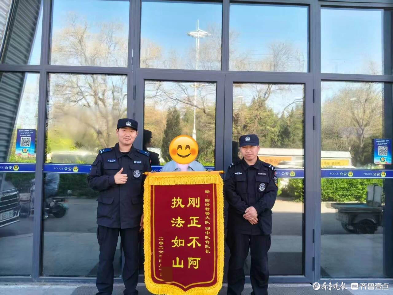 4月10日,临清市公安局特巡警大队收到一面印有“刚正不阿 执法如山”的锦旗。