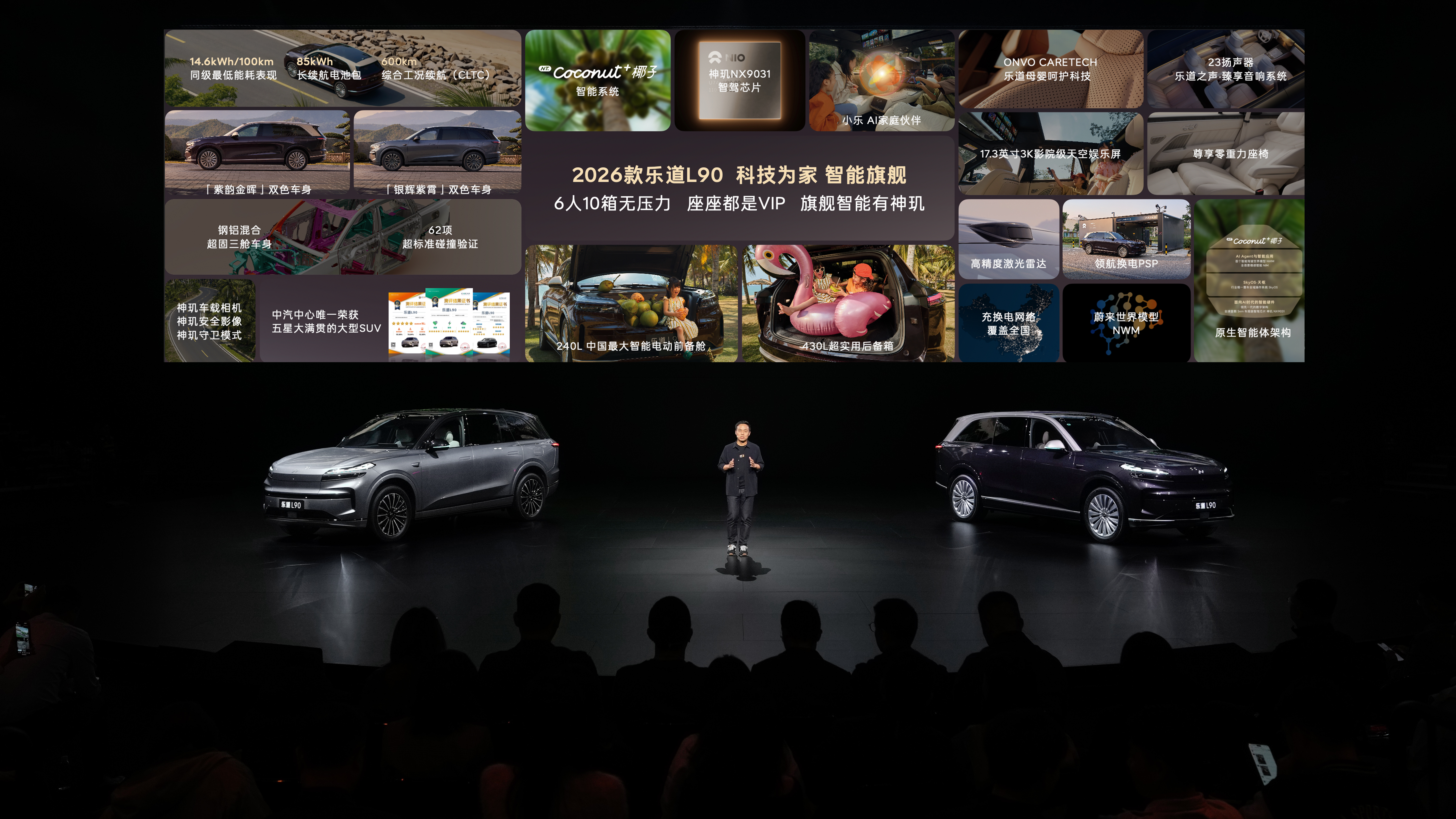 作为大三排SUV革新之作,乐道L90上市以来累计交付超5万台,稳居30万级大型SUV销冠。科技为家,智能旗舰,2026款乐道L90再次进化,带来八大板块、超过70项软硬件升级。新车率先搭载蔚来自研全球首颗5nm车规级智驾芯片「神玑NX9031」、中国首个面向自动驾驶的世界模型「蔚来世界模型」和行业唯一面向AI的整车全域操作系统「SkyOS·天枢」,成为30万级别唯一集齐顶尖智能科技三大件智能旗舰。同时,新车还搭载全新Coconut 3.0与Coconut+ 3.0智能系统,从激光雷达硬件到全场景智驾,从神玑影像到小乐智慧场景,真正实现“6人10箱无压力、座座都是VIP、旗舰智能有神玑”,全面刷新大三排SUV的家庭出行新标杆。