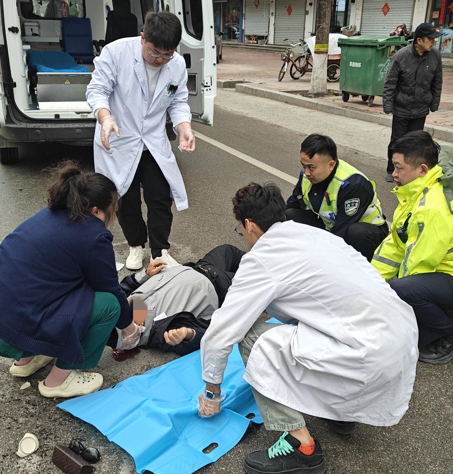 4月21日15时20分许,在莘县振兴街与通运路路口,莘县公安局交通管理大队执勤民警正在此执行日常勤务。此时,一名群众急匆匆地跑向执勤点求助,称看到前方路口有一位老人骑车摔倒了,情况不明。