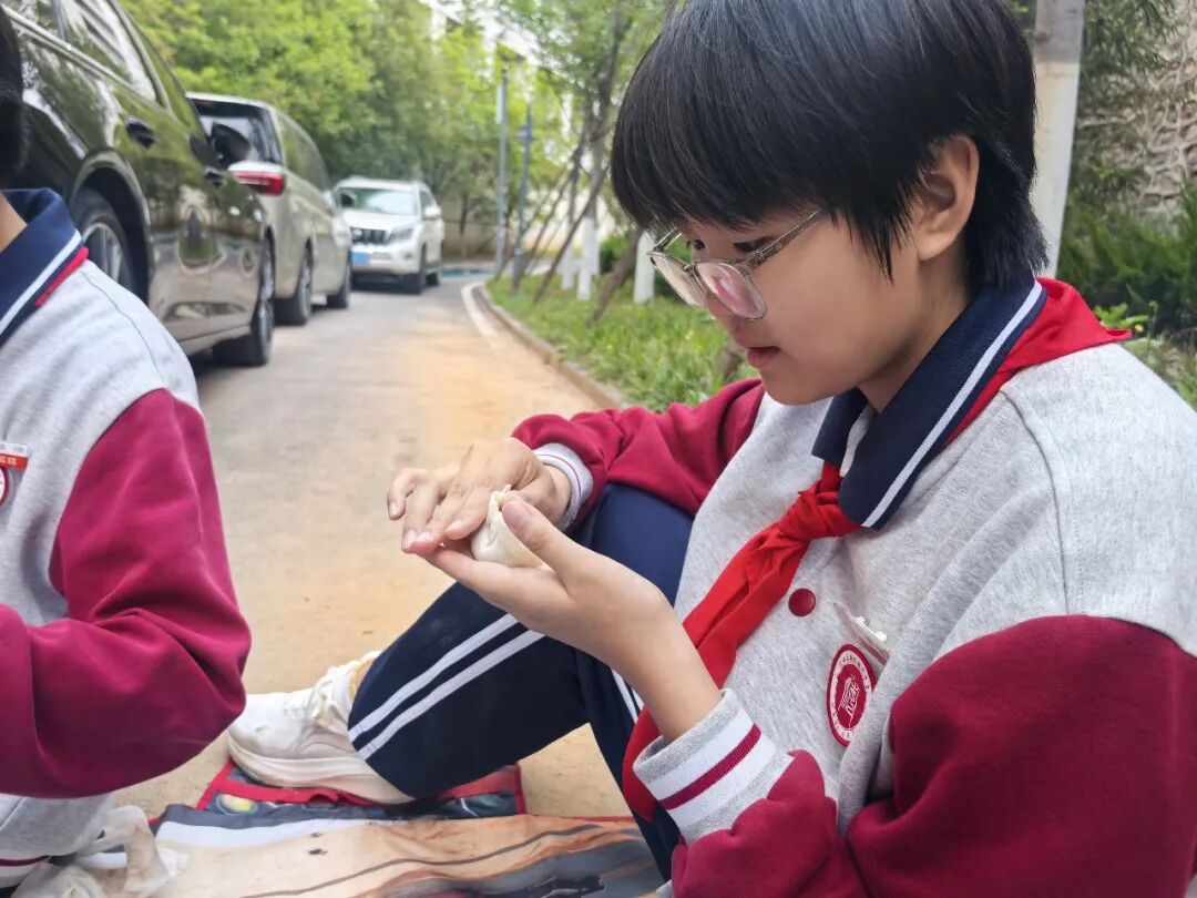 “第一次包的时候馅全跑出来了,我差点就想放弃了。后来同桌教我少放点馅、边缘蘸点水、一点一点捏,试了五六次终于成功了!”小曹同学骄傲地举起自己包的第一个“合格”饺子说。