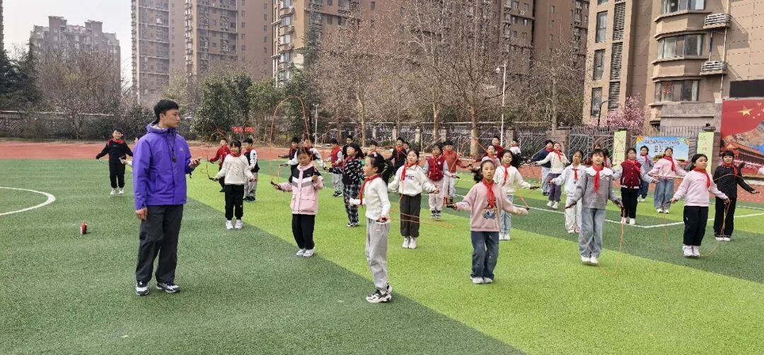 在济南高新区丰奥嘉园小学,每当大课间铃声响起,操场便迅速“热”起来:跑操队伍整齐有力,跳绳在阳光下上下翻飞,篮球在地面节奏回弹,学生在奔跑与欢笑中尽情释放活力。
