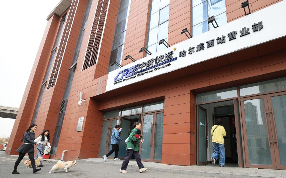 19日、ペット輸送サービスを利用するため、中鉄快運ハルビン西駅営業所に入る乗客。(ハルビン=新華社配信/徐率)