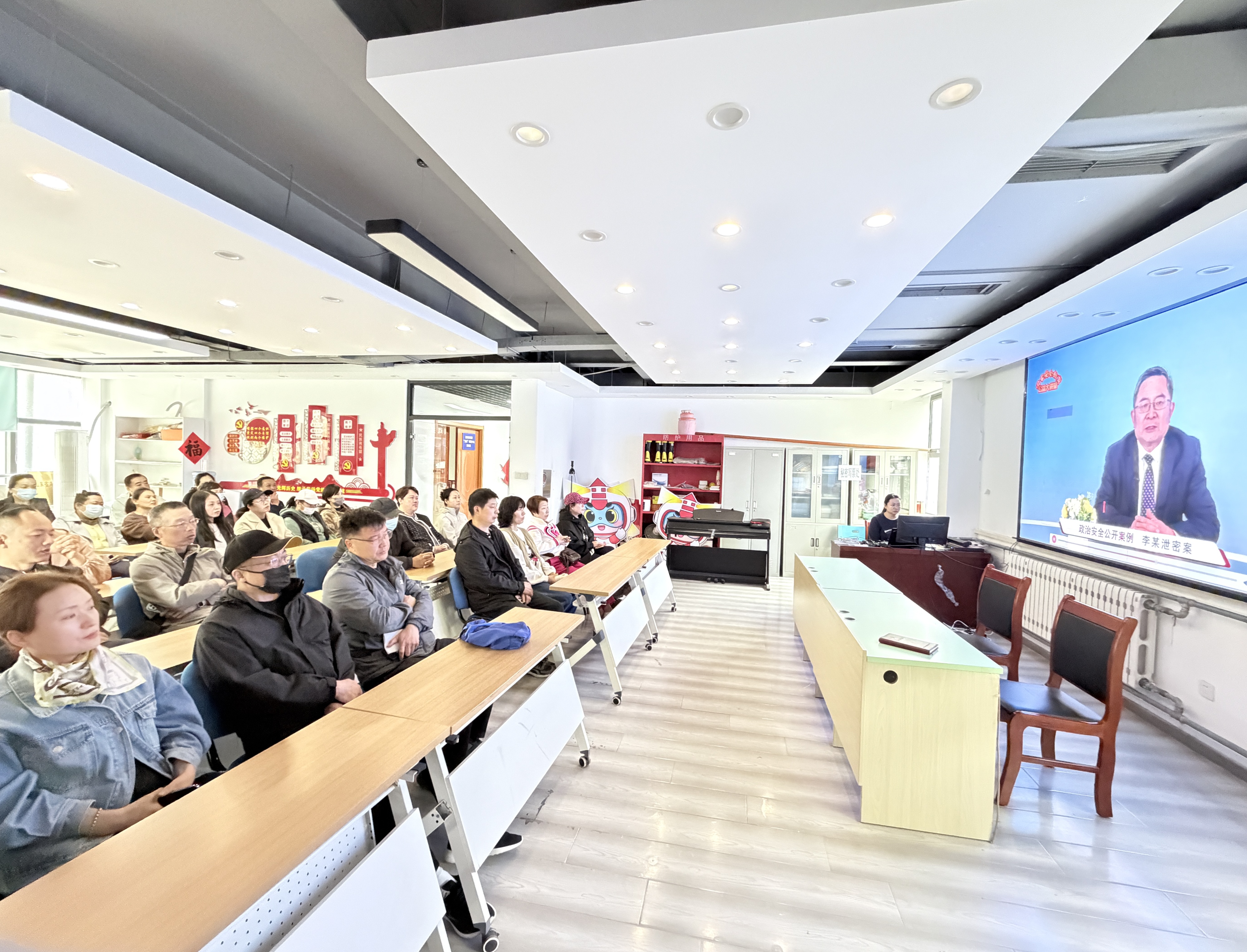 随后,全体人员共同观看《国家安全教育公益大讲堂》教育专题视频,影片通过真实案例、情景再现和权威解读,直观展现了维护国家安全的重要性与紧迫性,让在场居民深受教育、倍感警醒。大家纷纷表示,通过此次学习,对国家安全有了更全面、更深刻的理解,今后也将会不断提高安全防范意识,主动参与到维护国家安全的行动中来。