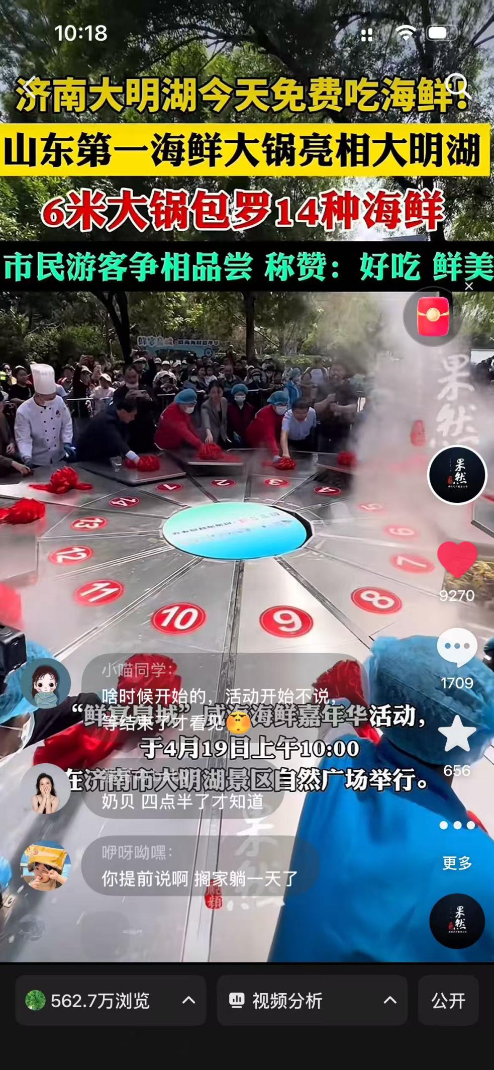 大明湖畔鲜味升腾,威海湾畔热度刷屏。4月19日,“鲜宴泉城”威海海鲜嘉年华在济南大明湖自然广场火爆启幕,直径6米海鲜大锅现蒸14种威海地标海味,吸引数千泉城市民与游客热情参与并现场品鉴大锅现煮的威海海鲜,相关话题同步登上微博济南、威海两地热搜榜一,“威海海鲜”再次成为全网焦点,奏响泉海双城联动、消费品牌升级的强音。