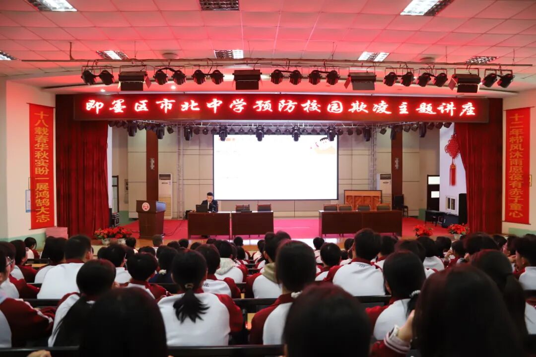 为进一步增强青少年法治观念,有效预防校园欺凌,营造安全文明校园环境,4月22日,青岛即墨区检察院检察官走进即墨区市北中学,为高一500余名学生带来一节“拒绝校园欺凌 弘扬校园正能量”主题法治宣讲活动。