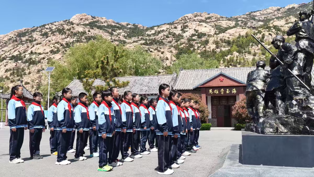 4月22日,临沂市莒南县组织中小学生走进英雄曹玉海展馆、鲁东南革命烈士陵园,开启了一场沉浸式红色教育之旅。展馆广场上,全体学生佩戴鲜艳红领巾,在肃立默哀中深切缅怀英烈。通过讲解员的细致讲述,孩子们深入了解了曹玉海烈士三赴战场、死守高地的英雄事迹,近距离瞻仰军功勋章、战地家书等珍贵遗物,并用画笔描绘英雄形象,在实景教学中感悟抗美援朝精神。