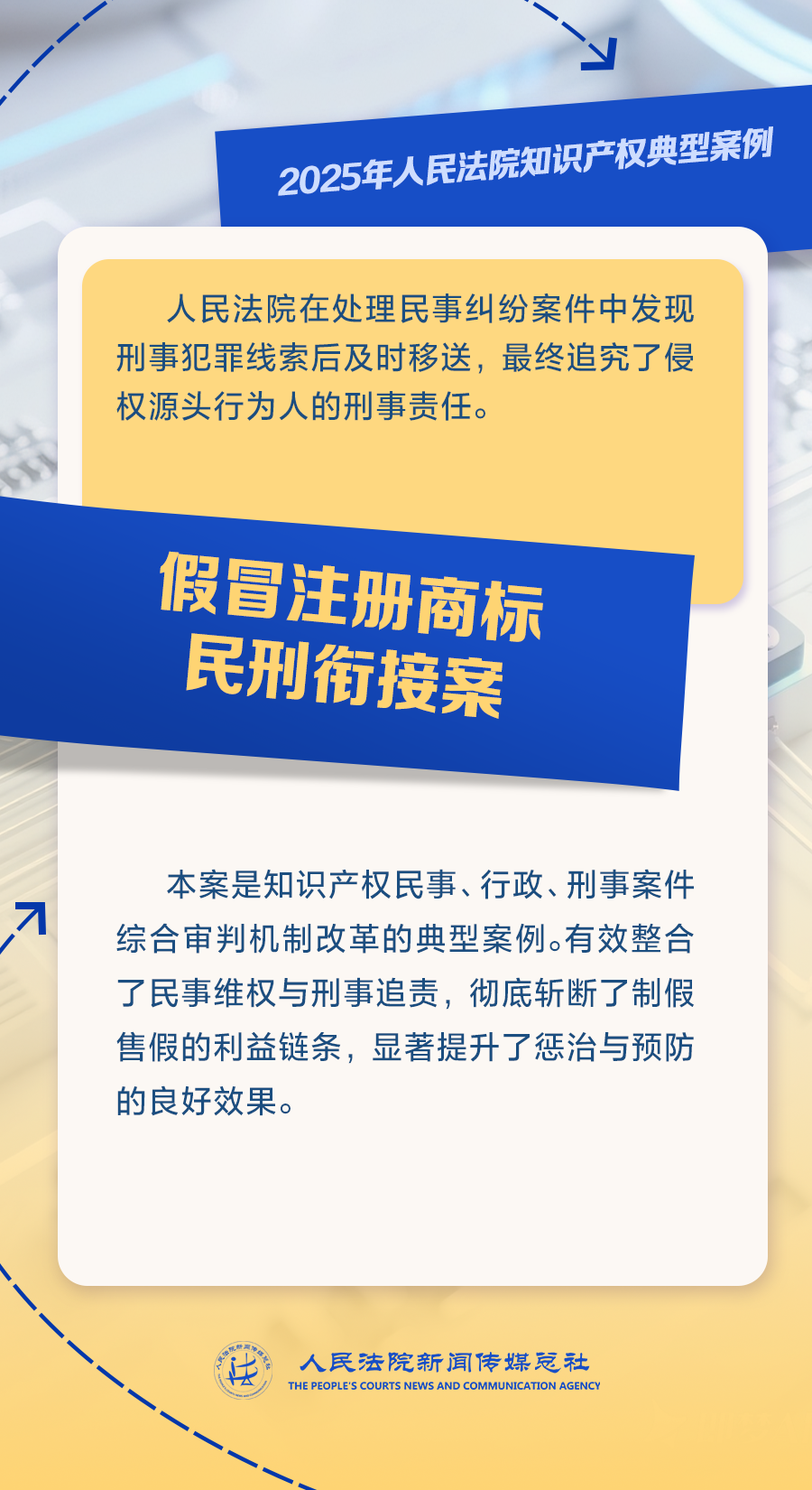 本案是知识产权民事、行政、刑事案件综合审判机制改革的典型案例。法院在处理民事纠纷案件中发现刑事犯罪线索后及时移送,最终追究了侵权源头行为人的刑事责任,有效整合了民事维权与刑事追责,彻底斩断了制假售假的利益链条。