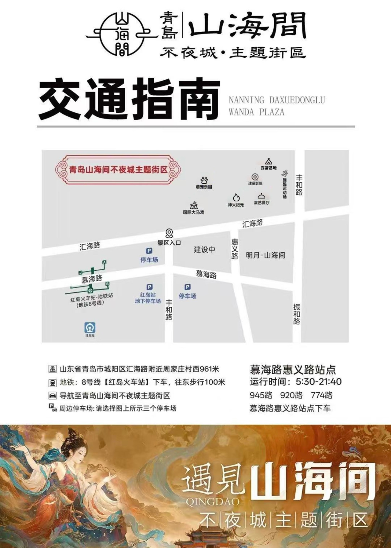 2023年,全国首个以《山海经》文化为主题的国潮文旅街区明月·山海间就在城阳区正式开业。作为城阳重点打造的文旅项目,其初期便确立“免费入园+国潮演出+灯光夜游”的运营逻辑,通过零门票门槛吸引海量客流,迅速成为城阳夜游经济的核心地标,更辐射青岛全域,成为周边市民休闲打卡、外地游客专程到访的网红目的地。