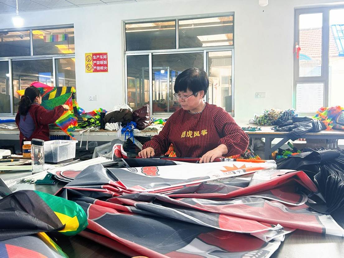 走进村子,机器声此起彼伏。潍坊鸿鑫风筝有限公司的车间里,十几名女工埋头赶制订单,一只只色彩斑斓的风筝从她们手中“飞”向包装箱。