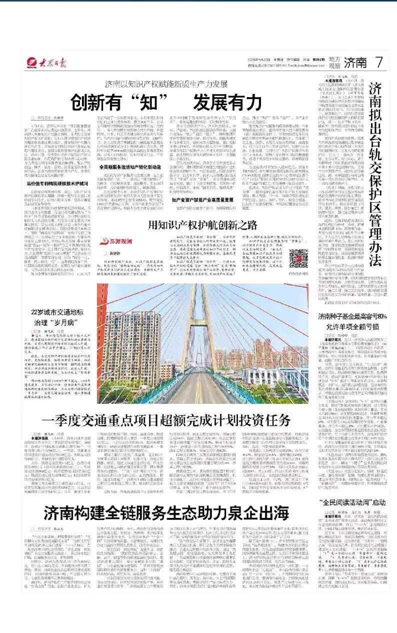 知识产权更是创新生态的“营养土”,助力提升产业竞争力。济南以生态协同发力,一批龙头企业凭借知识产权抢占全球赛道,众多创新成果从技术突破变为发展动能,城市创新生态持续优化,发展底色更足、动力更强。