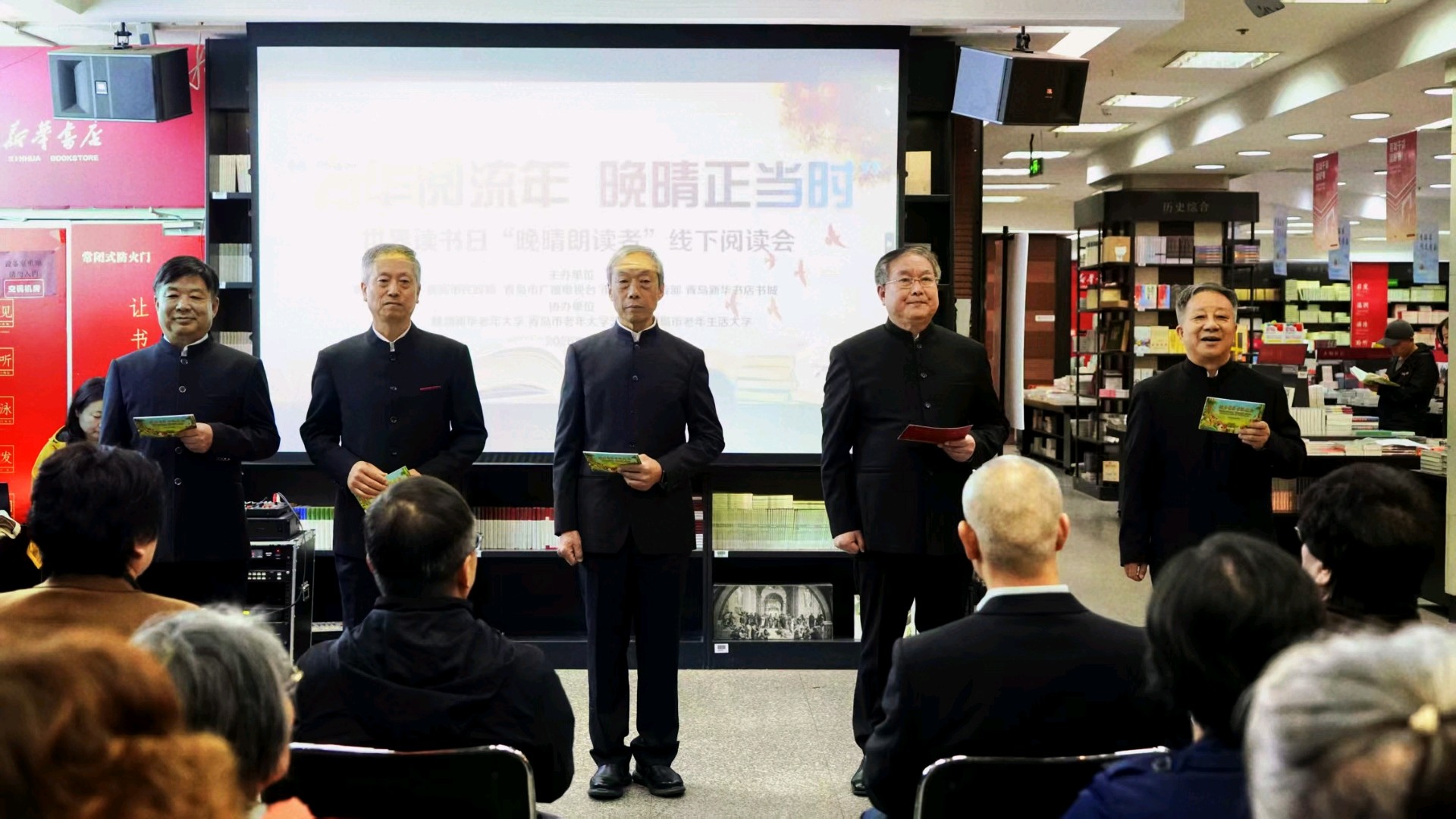 4月22日,第31个世界读书日来临之际,由青岛市老龄办、青岛市民政局、青岛市广播电视台、市南区委宣传部、青岛新华书店书城主办的“芳华阅流年 晚晴正当时”——“晚晴朗读者”线下阅读会在青岛书城举办。活动吸引近百名老年读者参与,现场成立“晚晴朗读者”银龄行动志愿服务队,推出《时光的书签》阅读朗诵系列短视频,标志着青岛银龄公益阅读活动正式启动。