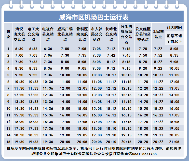 威海机场巴士站点免费接驳服务上线!附最新航班、巴士时刻表