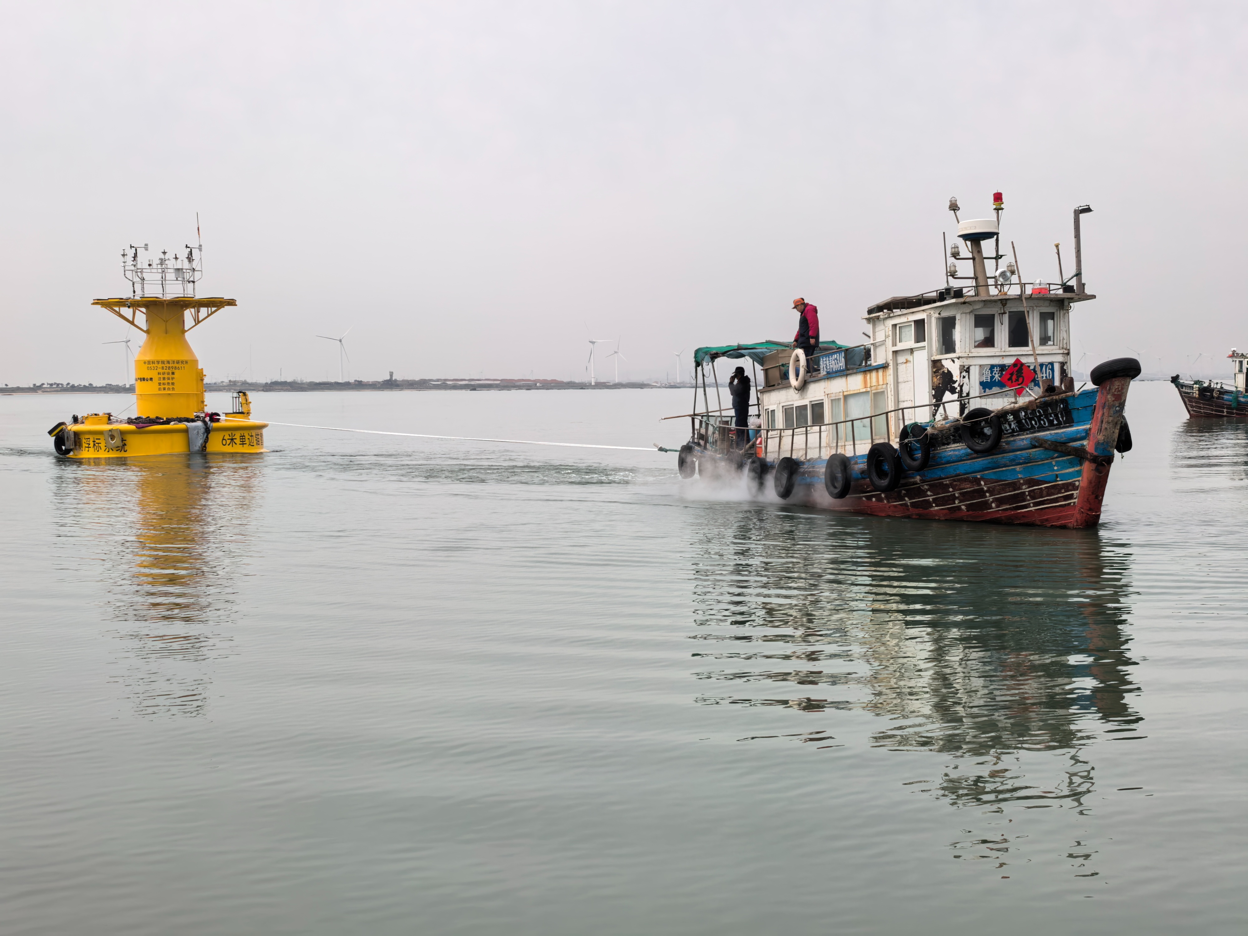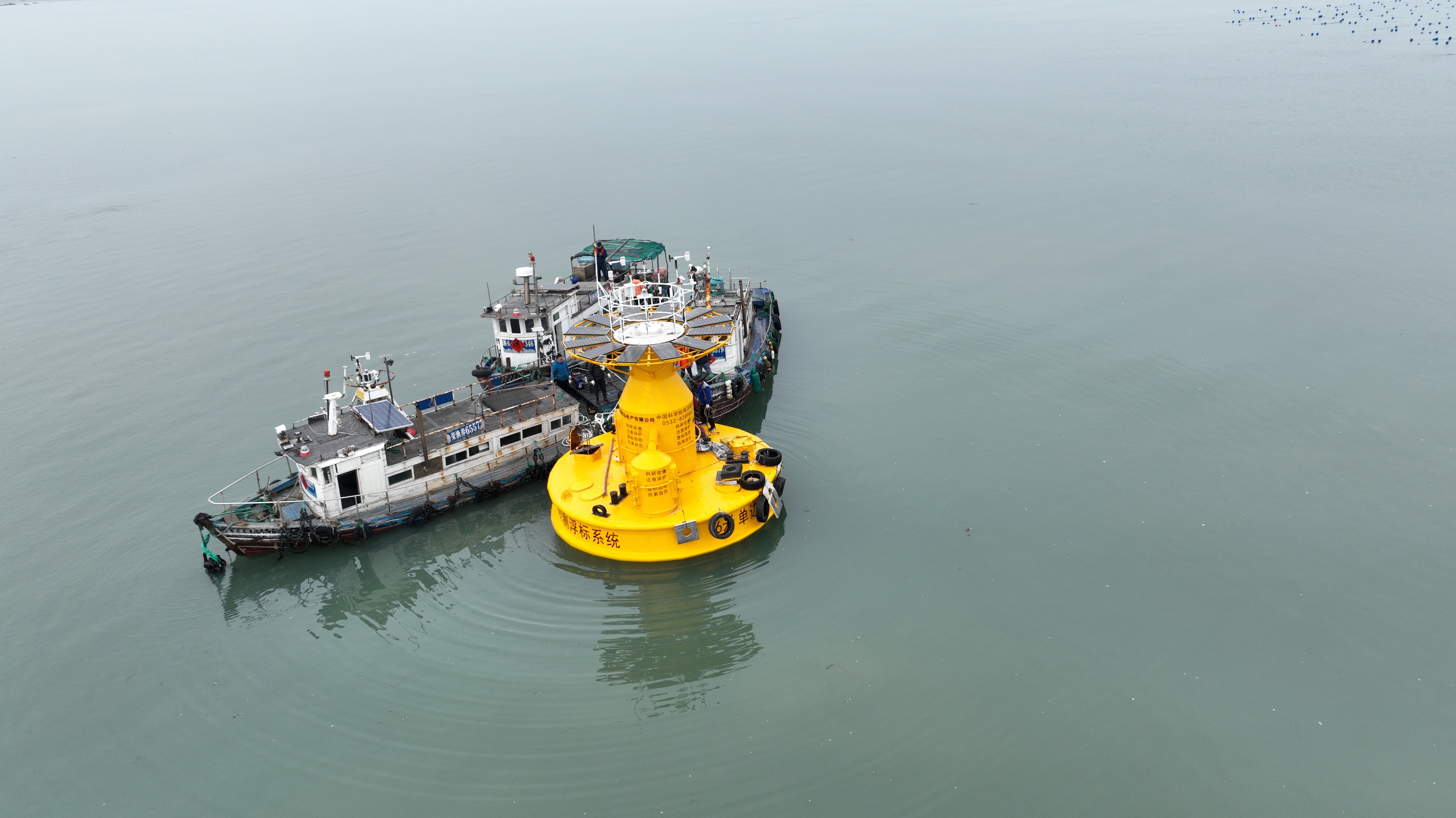 4月21日,由中国科学院海洋研究所自主研制的直径6米圆盘型单边锚智能自动观测浮标在山东荣成海域完成布放,正式运行,面向我国近海环境开展全水层剖面的安全、连续、实时观测。