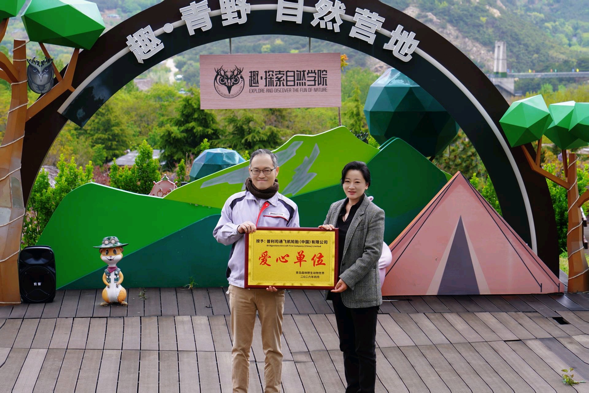 同时,青岛森林野生动物世界还向普利司通(中国)公司颁发“爱心单位”荣誉称号,感谢其捐赠飞机轮胎用于动物丰容活动。来自青岛职业技术学院和柳花泊小学的学生代表也分别发出守护自然、爱鸟护鸟的倡议。