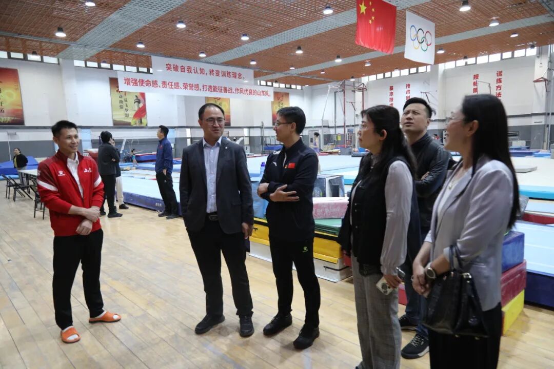 随后,山东省体操运动管理中心主任郝丕彪陪同参观体操训练馆、蹦床训练馆,观摩运动员日常训练场景。宋勇峰与体操总教练张成龙围绕运动员高强度训练中的腰部劳损、关节扭伤等常见运动损伤,就伤病预防、临床干预、康复训练等关键环节展开深入交流,共同探讨临床医疗与运动康复有机结合的高效路径,为运动员健康保障提供专业支撑。