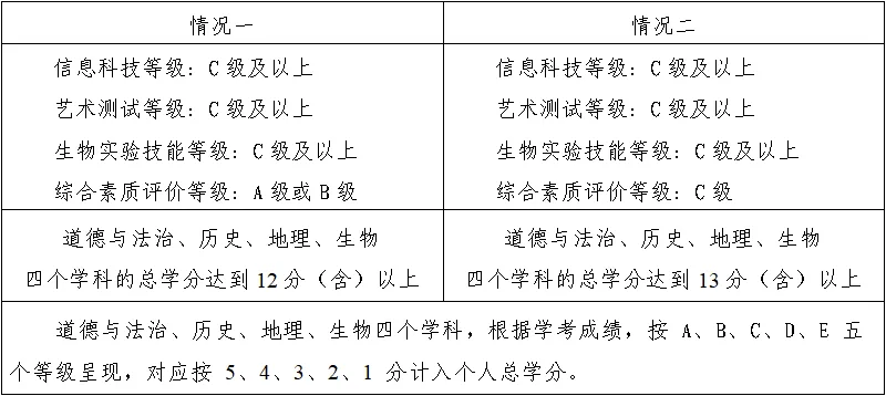 (1)第一志愿报考德州市第一中学,且学业水平考试相关等级和总学分符合下列两种情况之一;