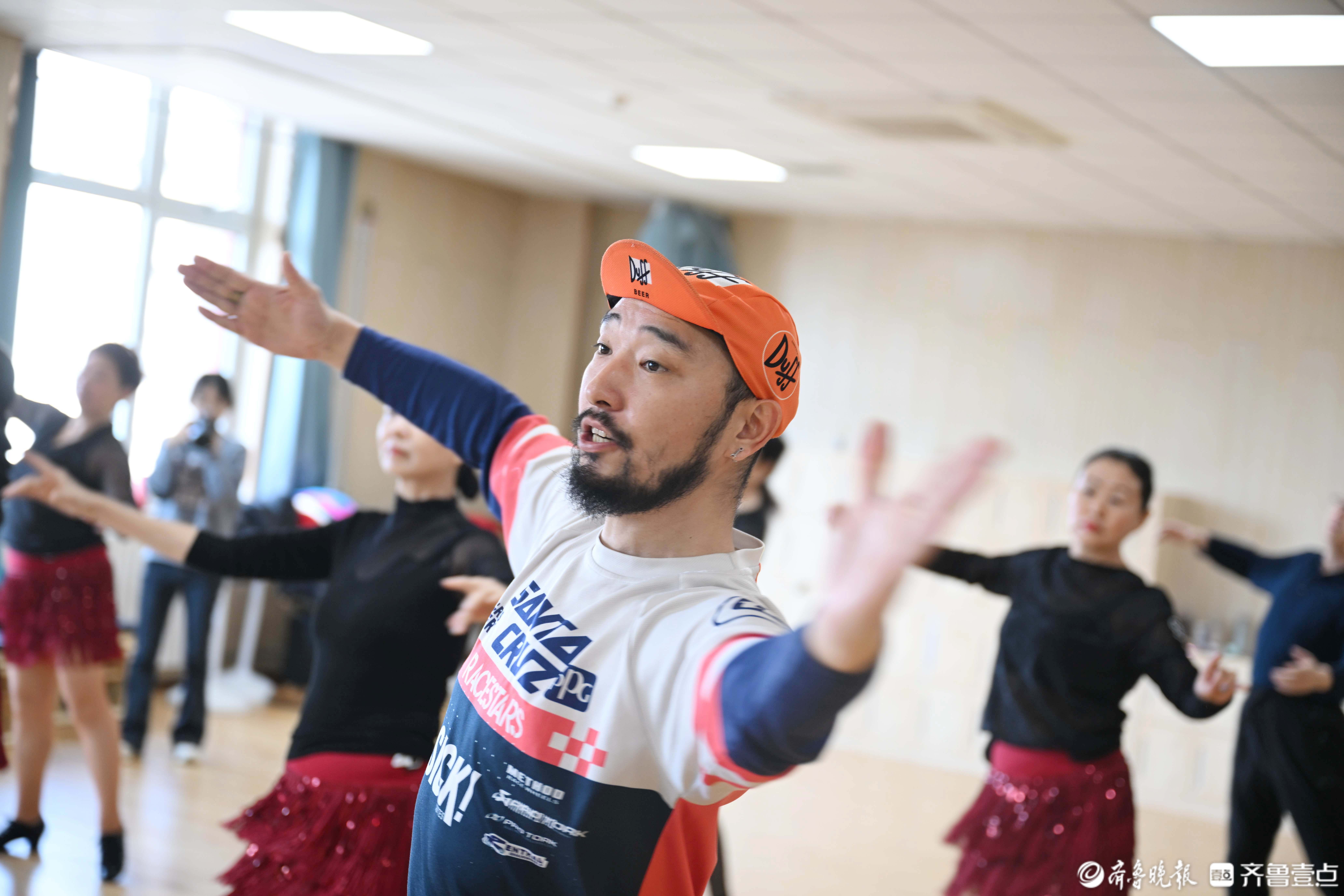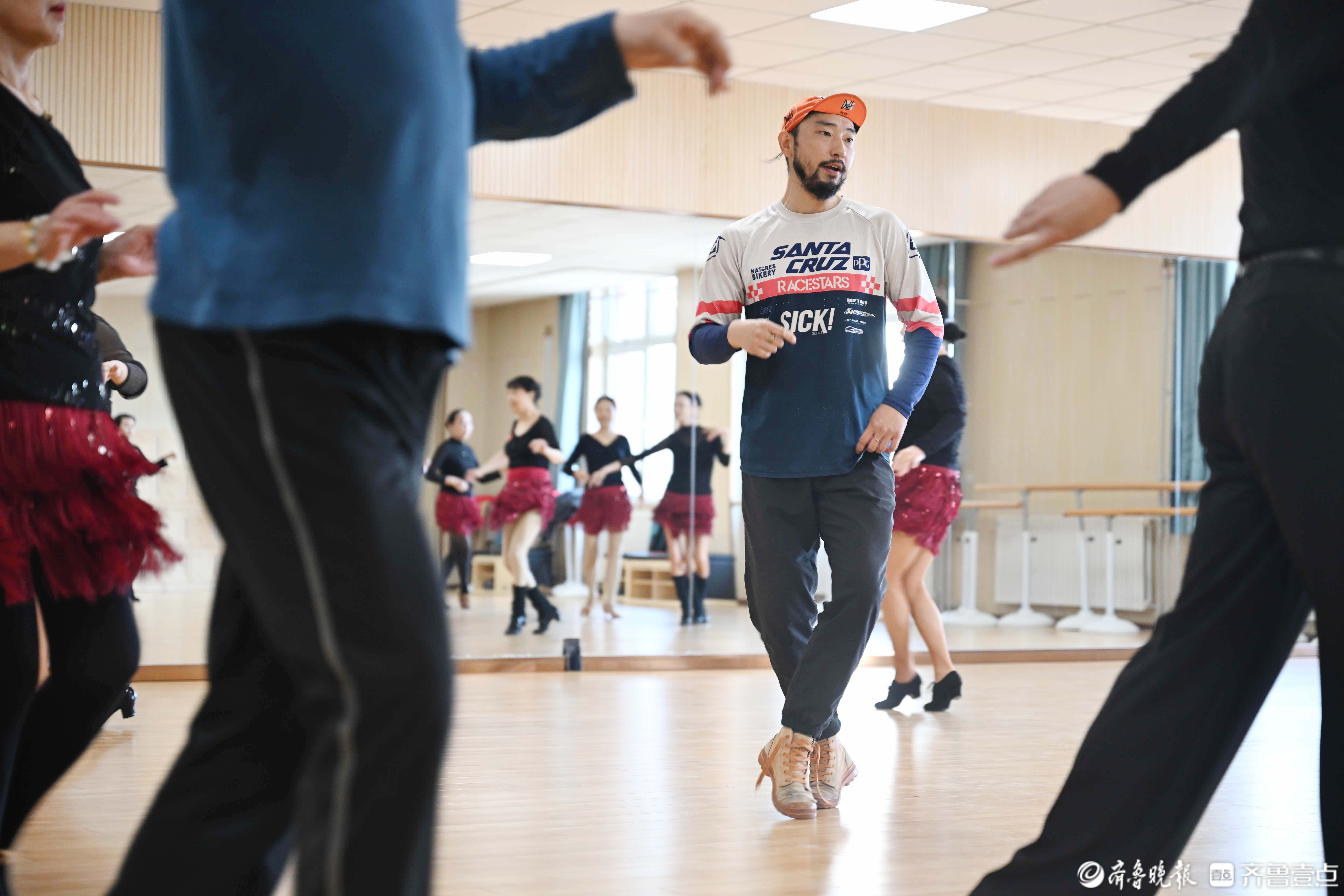 课堂上的宋君波,幽默风趣又严谨较真。教学十几年来,他深谙老年学员的学习节奏,经常用接地气的玩笑化解训练的疲惫,学生们都亲切地叫他“波波老师”。3月20日上午,在济南市老年大学拉丁舞表演班,他正带着学员们练习着舞蹈,一丝不苟地分解着每一个舞蹈动作,有跟不上的同学,下课后他会单独再教几遍,直到学员们学会。“这些老学员有的跟我学了十几年了,最大的年龄都70多岁了。”宋君波笑着说。也正是在他的用心专业指导下,这些原本零基础的老年学员,一步步地登上了省市甚至全国的舞台,用舞姿斩获了数不清的荣誉与奖项。