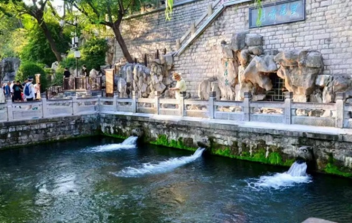 同样水势浩大,黑虎泉的声音更具猛兽般的野性。泉水从三个石雕兽头中喷泻而出,撞击着石壁和水池,发出虎啸狮吼般的低沉咆哮,“黑虎啸月”遂成为济南代表性的“听觉景观”。