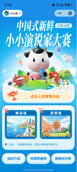 赛事启动至今,青岛、昆明双城联动,超3000名中小学生参与线上“双城探鲜”海选闯关,实时比拼、榜单更迭,氛围热烈。目前青岛赛区复赛晋级选手已陆续提交演讲视频,全程公益免费的模式,获得学校与家长的广泛认可。