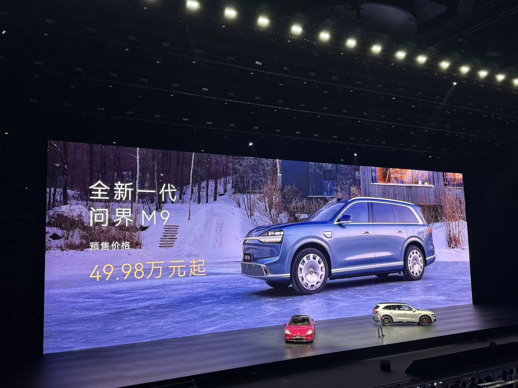 全新一代问界M9同步预售,标准版49.98万元起,Ultimate领世加长版66.98万元起。新车搭载6颗激光雷达,纯电续航最高750公里,全维升级智能驾驶与座舱体验,巩固旗舰地位。