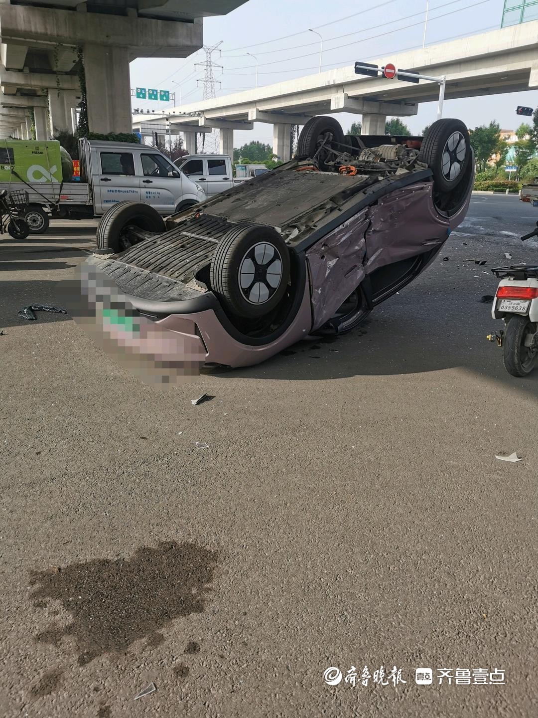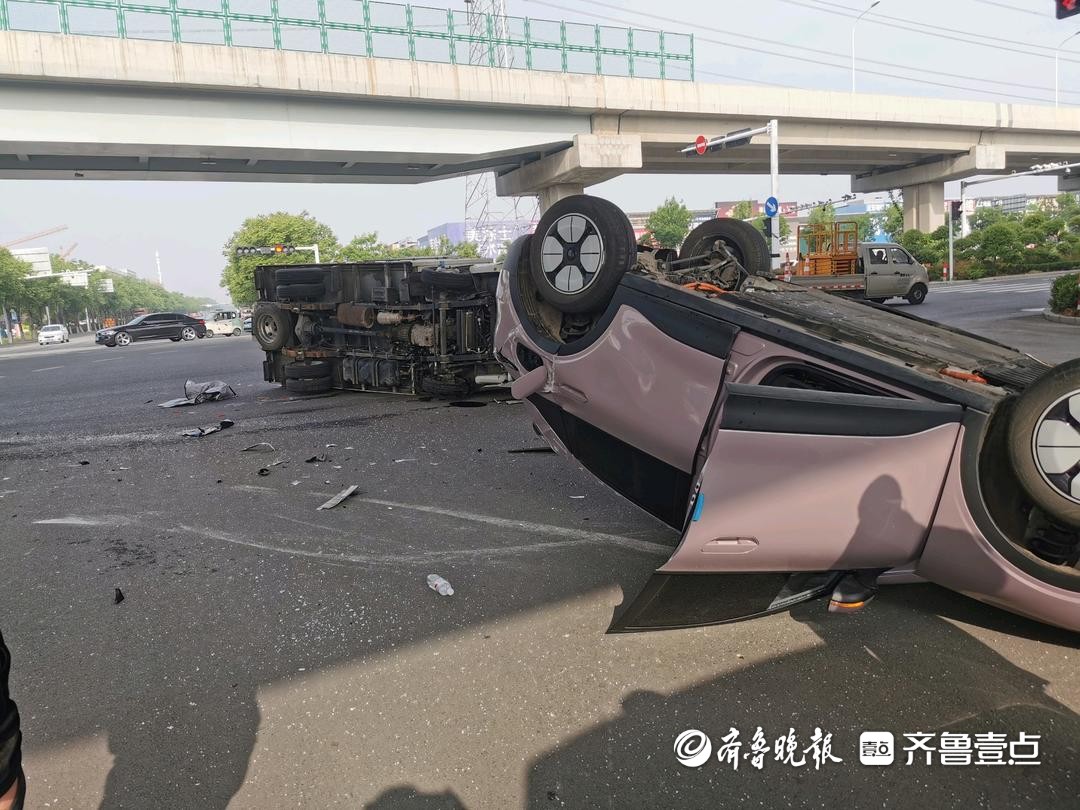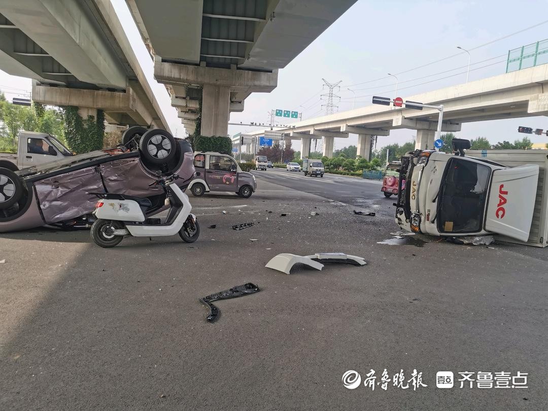 情报站|济宁济水大道与渔歌路口两车相撞,车辆侧翻一地碎片