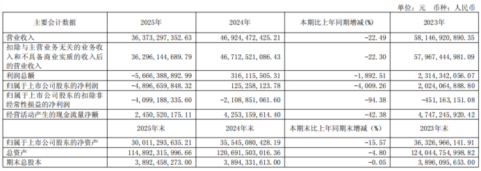 3月23日,豫园股份发布2025年年度报告。报告显示,2025年,公司实现营业收入363.73亿元,同比降低22.49%;归属于上市公司股东的净利润-48.97亿元,同比减少4009.26%;归属于上市公司股东的扣除非经营性损益的净利润-40.99亿元,同比减少94.38%。